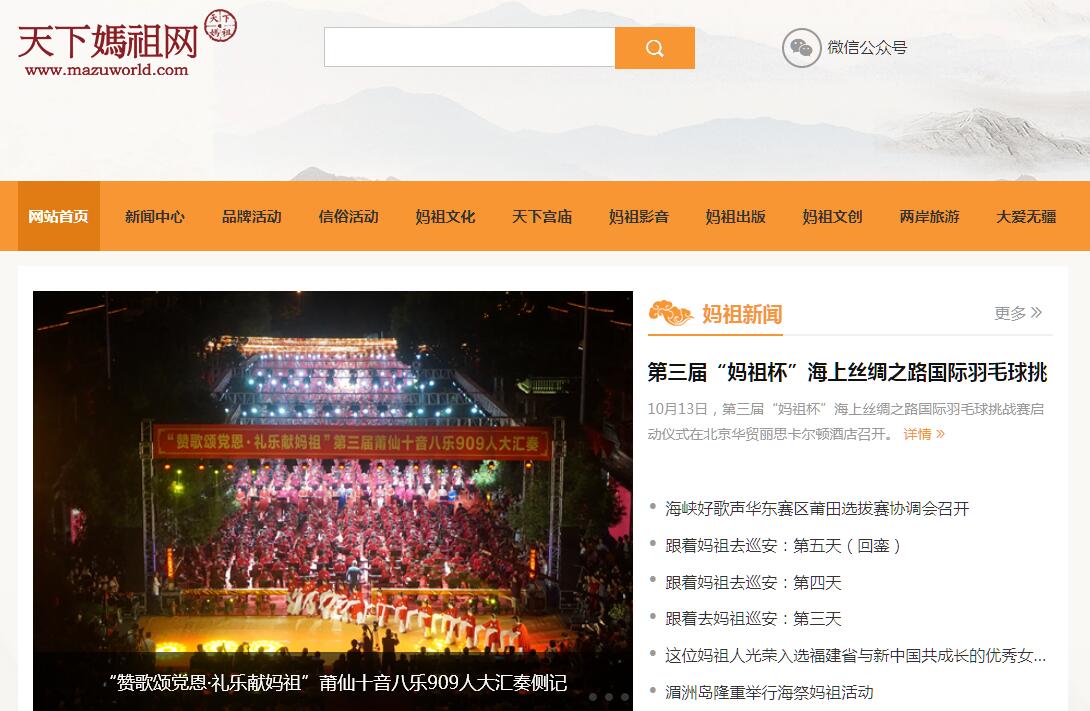 | 網(wǎng)站簡介: 天下媽祖網(wǎng)密切關注世界各地豐富的媽祖文化活動,注重媽祖文化的人文體驗,充分發(fā)掘媽祖文化的豐富內涵,匯聚媽祖文化的原創(chuàng)內容,開設有新聞動態(tài)、中華媽祖雜志、媽祖文化、網(wǎng)站品牌活動等主打欄目,開通了官方微信公眾號。 |