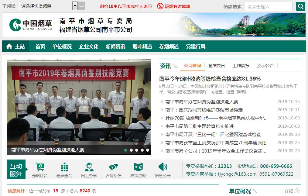 南平市煙草專賣局(公司)組建于1984年,于2006年底完成母子公司體制改革,理順產(chǎn)權(quán)關(guān)系;下轄10個縣級局(分公司)以及南平市金葉貿(mào)易服務(wù)有限公司、南平煙草物流有限公司兩個多元化經(jīng)營企業(yè),參股福建武夷煙葉有限公司、南平海晟連鎖商貿(mào)有限公司。截至2016年底,全市煙草系統(tǒng)從業(yè)人員共2246人。在福建省煙草專賣局和南平市委、市政府的正確領(lǐng)導(dǎo)下,全市煙草系統(tǒng)深入學(xué)習(xí)貫徹十八屆三中、四中、五中、六中全會精神,十九大精神和習(xí)近平總書記系列重要講話,堅持發(fā)展新理念,把握發(fā)展新機(jī)遇,開創(chuàng)發(fā)展新格局。目前,南平煙草擁有省級以上煙葉基地單元15個,擁有煙草站點(diǎn)74個。2016年,全市煙草系統(tǒng)實(shí)現(xiàn)稅利14.81億元,同比增長2.96%;1.22萬戶煙農(nóng)種植煙葉27.08萬畝,收購煙葉67.09萬擔(dān);13288戶卷煙零售戶銷售卷煙10.99萬箱;查獲卷煙案件726起,其中5萬元以上大要案40起,省局暗訪市場凈化率93.2%(居全省第四位)。南平市局(公司)和9個縣級局(分公司)榮獲“福建省第十二屆省級文明單位”稱號、南平市局榮獲“福建省第七屆文明行業(yè)”稱號,南平市局獲評“全國打假先進(jìn)集體”“2011-2015年全國法治宣傳教育先進(jìn)單位”“全國第三批煙草商業(yè)企業(yè)標(biāo)準(zhǔn)化示范企業(yè)”稱號。2018年南平煙草將全面貫徹黨的十九大精神、全國煙草工作會議和全省煙草商業(yè)系統(tǒng)工作會議精神,堅持穩(wěn)中求進(jìn)工作總基調(diào),以轉(zhuǎn)變發(fā)展理念為前提,落實(shí)市場化導(dǎo)向的煙葉經(jīng)營指導(dǎo)思想、落實(shí)“五?!本頍熃?jīng)營指導(dǎo)思想,以創(chuàng)新的思維抓好“穩(wěn)產(chǎn)銷、提結(jié)構(gòu)、降成本、增稅利”各項(xiàng)工作,提升全面從嚴(yán)治黨、煙葉市場供給、卷煙市場挖掘、專賣市場管控、行業(yè)規(guī)范管理五種能力,確保工作呈現(xiàn)新氣象、實(shí)現(xiàn)新突破,推動全市行業(yè)平穩(wěn)健康發(fā)展。