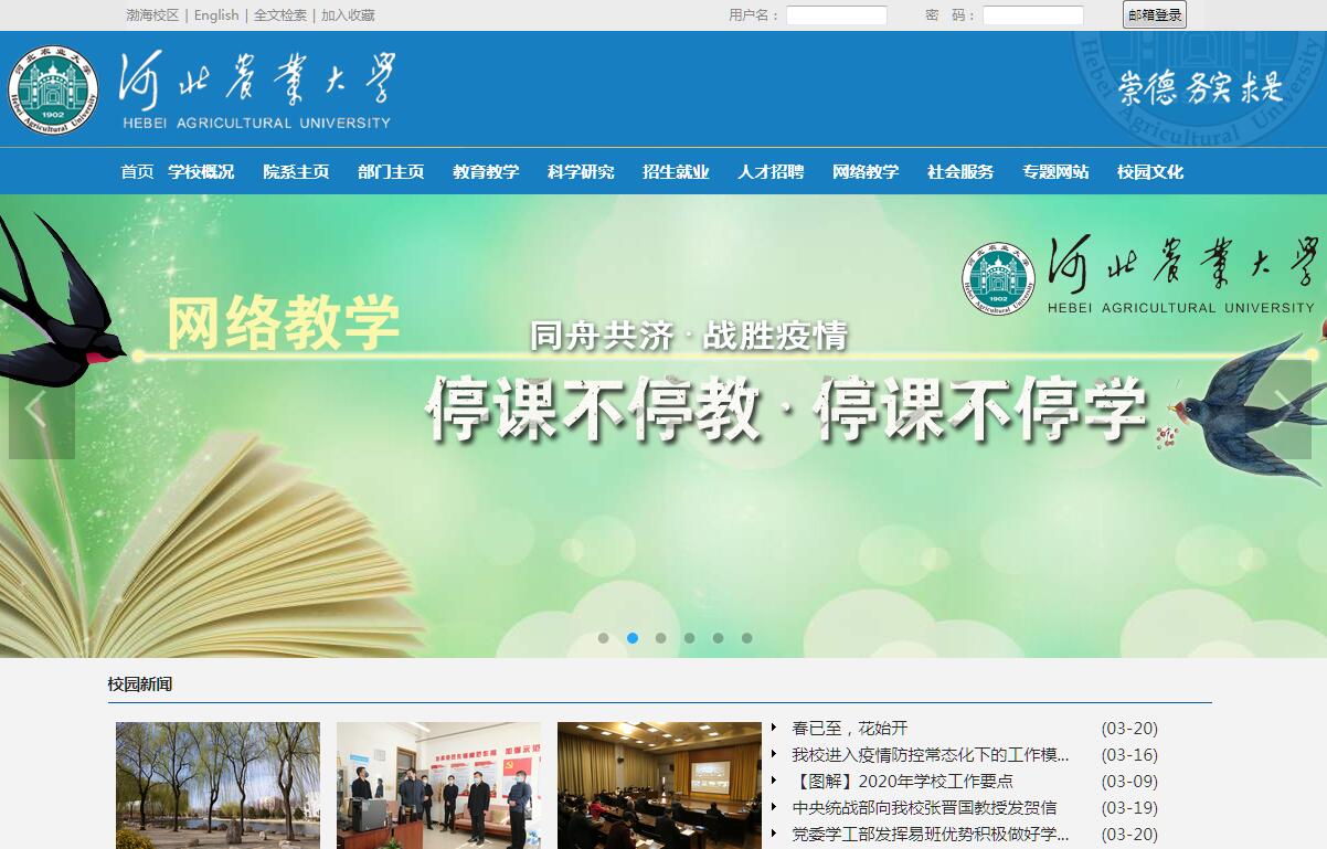 河北農(nóng)業(yè)大學(xué)創(chuàng)建于1902年,是我國最早實(shí)施高等農(nóng)業(yè)教育的院校,河北省建立最早的高等院校,先后經(jīng)歷了直隸農(nóng)務(wù)學(xué)堂、直隸高等農(nóng)業(yè)學(xué)堂、河北省立農(nóng)學(xué)院、河北農(nóng)業(yè)大學(xué)等歷史時期。辦學(xué)之初,學(xué)校就提出了“農(nóng)業(yè)教育非實(shí)習(xí)不能得真諦,非試驗(yàn)不能探精微,實(shí)習(xí)試驗(yàn)二者不可偏廢”的辦學(xué)理念。116年來,積淀形成了“崇德、務(wù)實(shí)、求是”的校訓(xùn),開創(chuàng)了享譽(yù)全國的“太行山道路”,凝結(jié)成“艱苦奮斗、甘于奉獻(xiàn)、求真務(wù)實(shí)、愛國為民”的“太行山精神”,受到黨和國家的肯定與表彰,被教育部樹立為高校戰(zhàn)線的一面旗幟。學(xué)校是河北省人民政府與教育部、農(nóng)業(yè)部、國家林業(yè)局分別共建的河北省重點(diǎn)骨干大學(xué),國家首批創(chuàng)新創(chuàng)業(yè)教育改革示范院校,全國第二批雙創(chuàng)示范基地,教育部“卓越工程師教育培養(yǎng)計(jì)劃”實(shí)施高校,教育部、農(nóng)業(yè)部、國家林業(yè)局首批“卓越農(nóng)林人才教育培養(yǎng)計(jì)劃”實(shí)施高校,首批入選“中西部高?;A(chǔ)能力建設(shè)工程”的高校。學(xué)校共有5個校區(qū)(保定東校區(qū)、保定西校區(qū)、秦皇島校區(qū)、定州校區(qū)、渤海校區(qū)),校園占地181萬余平米(2700余畝),建筑面積近129萬平方米;紙質(zhì)型圖書與文獻(xiàn)247余萬冊;固定資產(chǎn)24.9億元;附屬實(shí)驗(yàn)農(nóng)場3700余畝,林場40000余畝。學(xué)?,F(xiàn)有全日制本科生28214名,碩士研究生2155名,博士研究生294名,外國留學(xué)生18名。在職教職工3000余人,其中教授及相應(yīng)職稱者434人,副教授及相應(yīng)職稱者841人;博士生導(dǎo)師190人,碩士生導(dǎo)師511人;擁有國家百千萬人才工程、國家萬人計(jì)劃、國務(wù)院政府特殊津貼、省管專家等人才99人次,國家級教學(xué)名師3人,省級教學(xué)名師11人。學(xué)校設(shè)有26個學(xué)院,2個直屬系,現(xiàn)有1個國家重點(diǎn)(培育)學(xué)科,3個部級重點(diǎn)學(xué)科,4個學(xué)科列入河北省“雙一流”學(xué)科建設(shè)序列,4個河北省強(qiáng)勢特色學(xué)科,16個河北省重點(diǎn)學(xué)科;6個博士后科研流動站;11個一級學(xué)科博士點(diǎn),1個博士專業(yè)學(xué)位授權(quán)類別;24個一級學(xué)科碩士點(diǎn),9個碩士專業(yè)學(xué)位授權(quán)類別,6個工程碩士領(lǐng)域;設(shè)有89個本科專業(yè),形成了以農(nóng)學(xué)優(yōu)勢學(xué)科為引領(lǐng),“工、管、理、經(jīng)、文、法、藝術(shù)”等學(xué)科“入主流,有特色”,多學(xué)科交叉融合、協(xié)調(diào)發(fā)展的學(xué)科專業(yè)體系。農(nóng)業(yè)科學(xué)學(xué)科進(jìn)入ESI全球排名前1% 。學(xué)校致力于培養(yǎng)具有創(chuàng)新創(chuàng)業(yè)精神和較強(qiáng)實(shí)踐能力的高級專業(yè)人才,全面實(shí)施“311”人才培養(yǎng)模式和學(xué)分制教學(xué)管理制度,率先在全國制定實(shí)施本科專業(yè)實(shí)踐能力培養(yǎng)路線圖,具有國家級“本科教學(xué)工程”建設(shè)項(xiàng)目23個,省級項(xiàng)目109個,位居河北高校前列。獲國家級教學(xué)成果特等獎、一等獎、二等獎共計(jì)8項(xiàng),省級教學(xué)成果獎92項(xiàng)。大力推進(jìn)創(chuàng)新創(chuàng)業(yè)教育,建設(shè)國家首批農(nóng)科教合作人才培養(yǎng)基地6個。學(xué)校本科畢業(yè)生就業(yè)率連年位居省屬高校前列,是全國畢業(yè)生就業(yè)典型經(jīng)驗(yàn)高校,進(jìn)入全國就業(yè)工作50強(qiáng)。學(xué)校大力推進(jìn)科技創(chuàng)新,有1個國家級工程技術(shù)研究中心——“國家北方山區(qū)農(nóng)業(yè)工程技術(shù)研究中心”,45個省部級重點(diǎn)實(shí)驗(yàn)室(工程中心、基地、試驗(yàn)站、協(xié)同創(chuàng)新中心); 現(xiàn)代農(nóng)業(yè)產(chǎn)業(yè)技術(shù)體系專家國家級19名、省級57名?!笆濉币詠?,承擔(dān)國家和省部級重大科技項(xiàng)目1192項(xiàng),到位科研經(jīng)費(fèi)8.16億元,審定新品種61個,專利396項(xiàng),三大索引論文2080篇。獲省部級以上科技獎勵300項(xiàng),其中國家二等獎5項(xiàng)、何梁何利產(chǎn)業(yè)創(chuàng)新獎1項(xiàng)、省突出貢獻(xiàn)獎1項(xiàng)、省山區(qū)創(chuàng)業(yè)突出貢獻(xiàn)獎2項(xiàng)、省部一等獎27項(xiàng)。出版《河北農(nóng)業(yè)大學(xué)學(xué)報》等學(xué)術(shù)期刊。近年來,學(xué)校積極深化和拓展“太行山道路”,新建新農(nóng)村發(fā)展研究院和技術(shù)轉(zhuǎn)移中心等國家級科技轉(zhuǎn)化機(jī)構(gòu),入駐國家(保定)大學(xué)科技園;推廣新成果、新品種和新技術(shù)1000余項(xiàng),創(chuàng)造社會、經(jīng)濟(jì)效益100多億元;先后與長城汽車股份有限公司、山東登海先鋒種業(yè)有限公司、保定農(nóng)墾總公司等大型企業(yè)集團(tuán)進(jìn)行合作辦學(xué)或戰(zhàn)略合作,與保定市、邢臺市、衡水市、石家莊市及河北省氣象局等地方政府及部門簽訂戰(zhàn)略合作協(xié)議;建立教學(xué)、科研、生產(chǎn)“三結(jié)合”基地295個,區(qū)域綜合試驗(yàn)站10個,現(xiàn