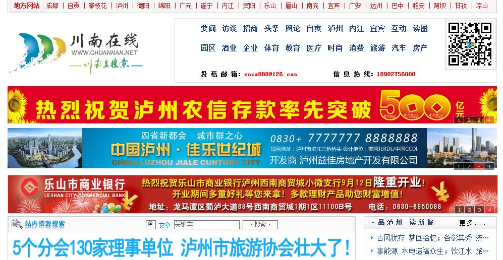 | 網(wǎng)站簡介: 瀘州,川南,川南在線,川南在線網(wǎng)-川南地區(qū)綜合性門戶網(wǎng)站,立足川南地區(qū)、服務(wù)川南地區(qū)大眾。開設(shè)新聞、千年鹽都、中國酒城、大千故里、魅力酒都、等二十余個頻道,是川南人的網(wǎng)上生活家園。 |