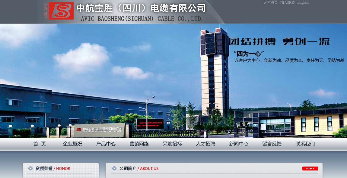 中航寶勝(四川)電纜有限公司是寶勝科技創(chuàng)新股份有限公司控股原四川劍南春股份旗下四川金瑞電工有限責(zé)任公司變更后成立。寶勝集團(tuán)作為中航寶勝(四川)電纜有限公司的實(shí)際控制人,是中國500強(qiáng)企業(yè)、中國線纜行業(yè)最具競爭力企業(yè)10強(qiáng)、國家重點(diǎn)高新技術(shù)企業(yè)、國家首批“重信用、守合同”企業(yè)和全國質(zhì)量效益型先進(jìn)企業(yè),擁有國家級(jí)企業(yè)技術(shù)中心和博士后科研工作站,目前共有40個(gè)科技項(xiàng)目被列入國家火炬、星火計(jì)劃和高新技術(shù)創(chuàng)新項(xiàng)目,70個(gè)產(chǎn)品填補(bǔ)國內(nèi)空白,35個(gè)產(chǎn)品被評(píng)為國家級(jí)新品,獲得國家專利技術(shù)180項(xiàng),參與起草、編制國家及行業(yè)標(biāo)準(zhǔn)82項(xiàng),取得300多項(xiàng)省部級(jí)科技成果。公司相繼通過ISO9001質(zhì)量體系、ISO14001環(huán)境體系、ISO10012計(jì)量體系以及“UL”、“3C”、“船社級(jí)”等國內(nèi)外權(quán)威認(rèn)證,“寶勝”牌電纜連續(xù)六年被認(rèn)定為國內(nèi)電纜行業(yè)唯一的“標(biāo)志性”品牌,繞組線連續(xù)三年被評(píng)為“四川省名牌產(chǎn)品”稱號(hào),享譽(yù)海內(nèi)外。中航寶勝(四川)電纜有限公司專業(yè)生產(chǎn)300多個(gè)品種、30000多個(gè)規(guī)格的祼銅線、高低壓電力電纜、電氣裝備用電纜、礦物絕緣電纜、鋁合金導(dǎo)體、換位線、紙包線、漆包線、玻璃絲包線、銅排、核電站核島繞組專用引接線以及電纜附件系統(tǒng)等產(chǎn)品。近年來,中航寶勝相繼成為國家電網(wǎng)公司、南方電網(wǎng)公司、中石油、中石化、中海油以及中國華能、中國大唐、中電投等五大發(fā)電公司的重點(diǎn)合作供應(yīng)商,并成功參與首都機(jī)場、上海浦東機(jī)場、廣州白云機(jī)場、天安門維修工程、國家體育場、世博中國館、國家大劇院、中央電視臺(tái)新大樓、北京奧運(yùn)工程、三峽工程、黃河小浪底工程、嶺澳核電站、田灣核電站、德陽-寶雞直流工程、新疆哈密送出工程、寧夏賀南山變電站擴(kuò)建工程、新加坡電網(wǎng)工程以及750kV及以下的國家電網(wǎng)工程應(yīng)用。中航寶勝(四川)電纜有限公司產(chǎn)品以優(yōu)良的品質(zhì)保證了設(shè)備平穩(wěn)運(yùn)作和工程順利進(jìn)展,贏得客戶充分肯定。展望未來,中航寶勝(四川)電纜有限公司將持之以恒地肩負(fù)“傳輸幸福能量、智引工業(yè)未來”的使命,以“高端化、產(chǎn)業(yè)化、國際化、信息化”為思路,把自身打造成凝聚員工人心、股東有信心、對(duì)社會(huì)有責(zé)任心、監(jiān)管部門放心的優(yōu)秀企業(yè),成為卓越的電能與智能產(chǎn)業(yè)公司!