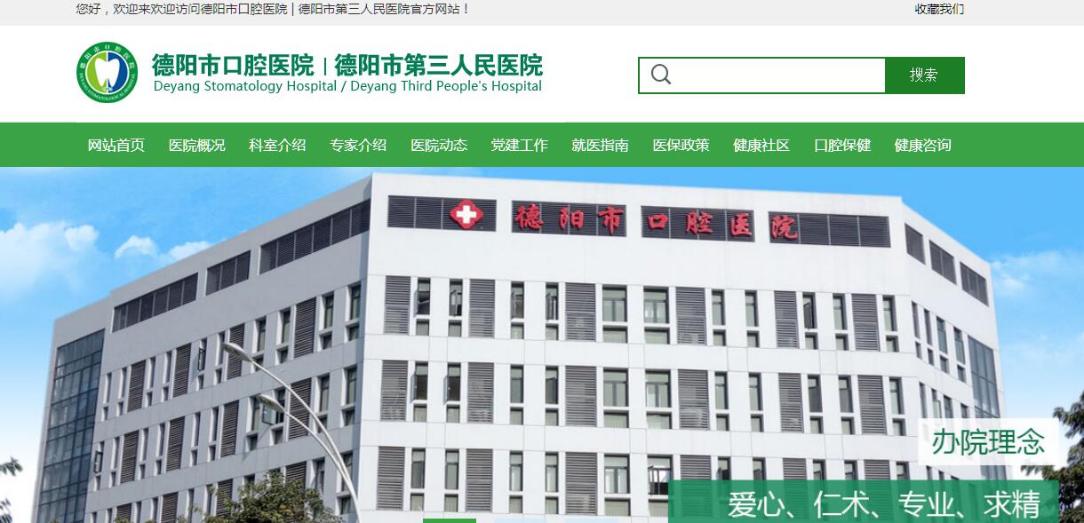 德陽市口腔醫(yī)院坐落于中國(guó)重工裝備制造基地德陽,醫(yī)院由1983年成立的德陽市級(jí)機(jī)關(guān)干部醫(yī)務(wù)室,歷經(jīng)市級(jí)機(jī)關(guān)門診部、口腔門診部的變遷,于1995年正式授牌改建,于1995年經(jīng)市政府同意在原德陽市口腔門診部基礎(chǔ)上,組建德陽市口腔醫(yī)院,1997年與市機(jī)關(guān)醫(yī)院合并,1999年增掛德陽市第三人民醫(yī)院名稱。實(shí)行一套人馬兩塊牌子,履行市級(jí)綜合醫(yī)院職責(zé)。位于天山北路77號(hào)的新業(yè)務(wù)樓于2010年由澳門特區(qū)政府援建,建筑面積5348平方米,2012年8月投入使用。醫(yī)院不斷規(guī)范管理,完善職責(zé)制度及考核機(jī)制,于2013年成功創(chuàng)建國(guó)家“二級(jí)甲等口腔專科醫(yī)院”。經(jīng)過30余年的建設(shè)和發(fā)展,醫(yī)院現(xiàn)已成為德陽地區(qū)集醫(yī)療、預(yù)防、教學(xué)、科研為一體的市直屬公立口腔??漆t(yī)院,是四川醫(yī)科大學(xué)、川北醫(yī)學(xué)院、成都大學(xué)醫(yī)護(hù)學(xué)院口腔臨床教學(xué)基地,是德陽市口腔臨床繼續(xù)醫(yī)學(xué)教育基地和德陽市醫(yī)學(xué)會(huì)口腔專委會(huì)主任委員單位。醫(yī)院現(xiàn)有職工160人,專業(yè)技術(shù)人員130人,其中碩士生導(dǎo)師、教授1人,主任醫(yī)師3人,副主任醫(yī)師14人,中級(jí)職稱衛(wèi)技人員41人,初級(jí)職稱衛(wèi)技人員26人。醫(yī)院編制椅位60臺(tái),開放椅位48臺(tái),編制住院床位60張,實(shí)際開放床位15張。擁有德陽地區(qū)唯一一臺(tái)口腔專用錐形束CT(CBCT),有口腔全景機(jī)、數(shù)字化牙片機(jī)、高頻牙片機(jī)、口腔鎮(zhèn)痛儀,超聲骨刀等一大批先進(jìn)的口腔??圃O(shè)備。醫(yī)院于2013年打造了設(shè)備現(xiàn)代化、布局規(guī)范化、操作程序化、管理科學(xué)化的消毒供應(yīng)中心,并通過市區(qū)兩級(jí)衛(wèi)計(jì)委全面評(píng)估并驗(yàn)收合格。臨床科室設(shè)有口腔內(nèi)科、口腔頜面外科、口腔修復(fù)科、口腔正畸科、兒童口腔科、口腔種植科、口腔急診室及口腔頜面外科住院病房??谇豢剖页_展常見的口腔疾病(如牙體牙髓、牙周粘膜、牙體美容、修復(fù)、正畸、齒槽外科、種植等)治療外,同時(shí)還開展了牙齒美白、無痛拔牙、全瓷冠美容修復(fù)、隱性無托槽矯治、種植牙及口腔頜面部外傷、腫瘤手術(shù)治療、微創(chuàng)拔牙等具有國(guó)內(nèi)領(lǐng)先的口腔治療項(xiàng)目。醫(yī)院下設(shè)東南社區(qū)衛(wèi)生服務(wù)中心,位于長(zhǎng)江西路東山南巷39號(hào),業(yè)務(wù)用房面積4040㎡,服務(wù)轄區(qū)共7個(gè)社區(qū)居委會(huì)總面積約11平方公里,常住人口13523戶,居民約50000人。中心專業(yè)技術(shù)力量雄厚,現(xiàn)有高級(jí)職稱3人,中級(jí)職稱17人,初級(jí)職稱10人,設(shè)有內(nèi)科、中醫(yī)康復(fù)科和五官科等臨床科室,內(nèi)科住院床位40張。公共衛(wèi)生科由全科醫(yī)療組及預(yù)防保健組組成,人員共11人,開展全科診療、中醫(yī)康復(fù)、婦幼保健、計(jì)劃生育指導(dǎo)、兒童保健及計(jì)劃免疫等基本醫(yī)療和基本公共衛(wèi)生服務(wù)。為本轄區(qū)居民提供預(yù)防、保健、醫(yī)療、健康教育、康復(fù)、計(jì)劃生育技術(shù)指導(dǎo)等健康服務(wù)。醫(yī)院將秉承“愛心、仁術(shù)、專業(yè)、求精”的辦院理念和“處處是服務(wù)之地、天天是服務(wù)之時(shí)、人人是服務(wù)之人”的服務(wù)理念,全心全意為人民健康服務(wù),為建成省內(nèi)一流、管理科學(xué)、醫(yī)德高尚、學(xué)科健全、技術(shù)精湛、患者信賴的三級(jí)口腔專科醫(yī)院而努力。