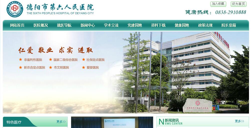 德陽市第六人民醫(yī)院(東汽醫(yī)院)是國家二級甲等綜合醫(yī)院,國家級愛嬰醫(yī)院,四川省數(shù)字化醫(yī)院,德陽市、區(qū)兩級醫(yī)保、新農(nóng)合定點醫(yī)院,“120”網(wǎng)絡(luò)醫(yī)院;四川大學華西醫(yī)院網(wǎng)絡(luò)醫(yī)院,成都軍區(qū)醫(yī)院協(xié)作醫(yī)院,四川大學華西醫(yī)院康復醫(yī)院教學醫(yī)院、假肢矯形裝配醫(yī)院,遼寧中醫(yī)藥大學教學醫(yī)院,中國醫(yī)學科學院北京阜外心血管病醫(yī)院心血管疾病診療質(zhì)量監(jiān)測基地。醫(yī)院位于德陽市區(qū)廬山南路三段三十五號,由香港特區(qū)政 府獨資整體援建,建筑面積3.2萬㎡。醫(yī)院規(guī)劃床位300張,10萬元以上大中型設(shè)備60余臺套。醫(yī)院現(xiàn)有心血管和普外兩個市級重點??啤H河懈呒壜毞Q專業(yè)技術(shù)人員近40人,醫(yī)院還聘請華西醫(yī)院和省人民醫(yī)院8名知名教授為各個專業(yè)首席專家,不定期來院查房、會診、手術(shù)以及技術(shù)指導,近年還不定期邀請臺灣、香港專家教授來院技術(shù)指導。醫(yī)院始建于1965年,由黨中央、國務院批準成立,專門服務于三線企業(yè)東方汽輪機廠(東方電氣集團東方汽輪機有限公司前身),由來至于上海、北京、哈爾濱、成都等各大醫(yī)院專業(yè)技術(shù)拔尖、政治素養(yǎng)過硬的醫(yī)務人員組建而成。五十年來一直伴隨東汽成長。2008年汶川大地震時,全院職工在漢旺本部被完全摧毀情況下,發(fā)揚“不怕犧牲,敢于勝利,堅韌不拔,艱苦創(chuàng)業(yè),自主創(chuàng)新,勇攀高峰”的“東汽精神”,第一時間整體投入傷員救治,當天就轉(zhuǎn)運傷員1500余人!此后,全院職工堅守在極重災區(qū)抗震救災和衛(wèi)生防疫,醫(yī)院的表現(xiàn)被媒體廣為宣傳并受到國家衛(wèi)生部、國資委、四川省委、四川省政府的表彰。醫(yī)院在“汶川”大地震后于2009年9月26日在德陽經(jīng)濟技術(shù)開發(fā)區(qū)異地重建,2014年1月1日整體移交德陽市人民政府。醫(yī)院目前擁有臨床醫(yī)學、口腔醫(yī)學、中醫(yī)學、公共衛(wèi)生與預防醫(yī)學、藥學和中藥學六個一級學科,外科、內(nèi)科、急診科、婦產(chǎn)科、兒科、康復科、皮膚科、眼耳鼻科、全科醫(yī)學、醫(yī)學影像、醫(yī)學檢驗十一個二級學科以及近30個亞專業(yè),醫(yī)院是全市唯一擁有職業(yè)衛(wèi)生服務資質(zhì)的醫(yī)院,是全市唯一實驗室通過計量認證的醫(yī)院,設(shè)有監(jiān)測檢驗中心,開展職業(yè)危害因素監(jiān)測、職業(yè)健康體檢;設(shè)有健康體檢中心,開展各類健康體檢。作為政府舉辦的非盈利性公立醫(yī)院,我院時刻牢記自己的社會責任。近年多次在社區(qū)舉辦健康講座和義診,數(shù)萬人受益;和德陽市殘聯(lián)合作開展“腦癱兒童康復項目”和“白內(nèi)障復明工程”獲得社會好評;積極參加社會公益活動和“彝良、廬山地震”等大型災害救援行動。作為德陽經(jīng)開區(qū)醫(yī)療衛(wèi)生中心,我院將立足開發(fā)區(qū)、面向德陽,以一批優(yōu)勢特色??茷楹诵模蛟炀哂邢愀厶厣男箩t(yī)院,以更優(yōu)質(zhì)、更溫馨的服務回饋社會,服務德陽市民。