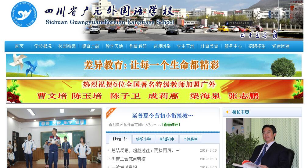 四川省廣元外國(guó)語(yǔ)學(xué)校是廣元市委、市政府引進(jìn)上海新紀(jì)元教育集團(tuán)投資創(chuàng)辦的一所集學(xué)前教育、小學(xué)教育、中學(xué)教育于一體的高起點(diǎn)、高規(guī)格、現(xiàn)代化、全寄宿制學(xué)校。校園坐落于廣元教育園區(qū),占地123875.36㎡,交通便利,環(huán)境清幽。學(xué)校于2002年9月奠基動(dòng)工,2003年8月招生開學(xué),現(xiàn)有教學(xué)班121個(gè),在校學(xué)生6200余人。且擁有專任教師374人,其中特級(jí)教師10人;教師學(xué)歷達(dá)標(biāo)率100%,其中碩士28人、本科289人、???5人;擁有省級(jí)中小學(xué)教育專家、省級(jí)骨干教師(學(xué)科帶頭人、名師、首席教師、優(yōu)秀教師、模范班主任、優(yōu)秀班主任)22人,市級(jí)名師、市級(jí)骨干教師48人,市級(jí)優(yōu)秀教師及優(yōu)秀班主任33人,集團(tuán)核心員工5人、集團(tuán)首席教師2人、集團(tuán)學(xué)科帶頭人及班主任帶頭人33人。學(xué)校以“創(chuàng)辦優(yōu)質(zhì)教育,滿足社會(huì)需求”為愿景,確立“差異教育,多元發(fā)展”的辦學(xué)思想,恪守“止于至善”的校訓(xùn),精心鍛造專業(yè)化、差異化、數(shù)字化、國(guó)際化的教育品牌。學(xué)校先后被授予“中國(guó)基礎(chǔ)教育研究中心外語(yǔ)實(shí)驗(yàn)學(xué)?!薄爸袊?guó)啦啦操推廣示范基地”“教育部中國(guó)教師發(fā)展基金會(huì)重點(diǎn)課題科研單位”“中科院心理研究所心理教育百校工程科研基地”“北京大學(xué)青少年素質(zhì)教育與才能培養(yǎng)實(shí)踐基地”“上海外國(guó)語(yǔ)大學(xué)口語(yǔ)教學(xué)基地”“四川省綠化示范學(xué)校”“四川省陽(yáng)光體育示范學(xué)?!钡确Q號(hào)。國(guó)家、省、市領(lǐng)導(dǎo)多次來校視察,中央電視臺(tái)、《中國(guó)教育報(bào)》等中央、省、市數(shù)十家主流媒體先后報(bào)道,對(duì)學(xué)校教育特色及辦學(xué)業(yè)績(jī)給予了高度評(píng)價(jià)。