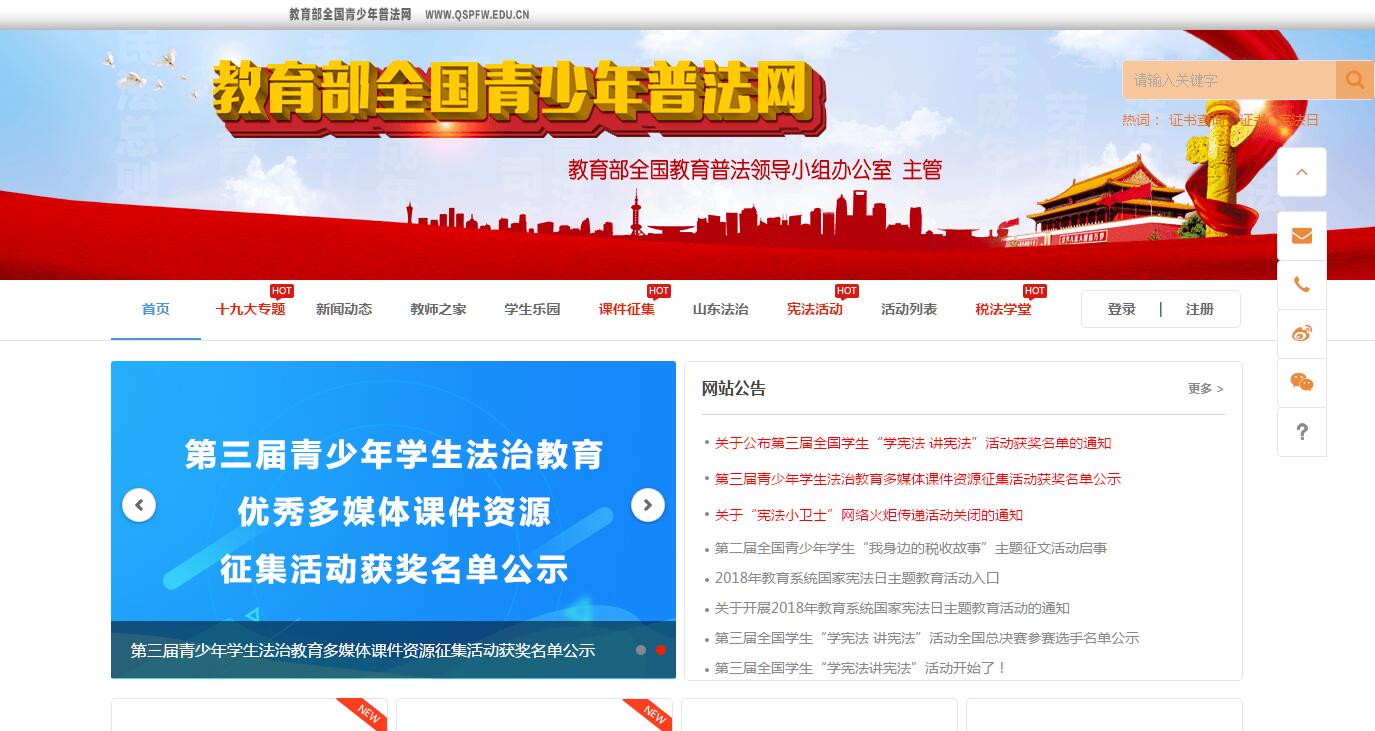 貫徹落實黨的十八大提出的“全面推進依法治國,深入開展法制宣傳教育,弘揚社會主義法治精神,樹立社會主義法治理念,增強全社會學法尊法守法用法意識”的號召,進一步推動教育部《全國教育系統(tǒng)開展法制宣傳教育的第六個五年規(guī)劃(2011-2015年)》的實施,加強對全國中小學校的法制宣傳和教育工作的指導與幫助,教育部委托北京外國語大學、外語教學與研究出版社共同建設、運營“教育部全國青少年普法網(wǎng)”(以下簡稱“青少普法網(wǎng)”),旨在充分利用網(wǎng)絡等現(xiàn)代媒體和傳播方式,拓展和豐富中小學普法工作的途徑與方法,促進各地各級學校普法工作的有效推進。教育部對“青少普法網(wǎng)”的工作定位是:開展網(wǎng)絡普法教育課題研究,為全國青少年提供豐富的普法教育資源,為全國中小學開展法制教育提供支持,為教育領域開展普法工作提供平臺,為各地報送和展示普法成果提供支持。“青少普法網(wǎng)”力求針對青少年學生的年齡和認知特點,整合全社會乃至國外的法制教育資源,以現(xiàn)代媒體和信息技術為依托,為全國青少年搭建一個屬于他們自己的、符合時代特點的創(chuàng)新型普法平臺,建立一個全國性青少年法治教育專業(yè)網(wǎng)站。本網(wǎng)站開設多個主題的普法欄目,融合各地區(qū)、各學校的各種載體的法制教育資源,通過系列動畫片、多種多媒體素材、在線網(wǎng)絡學習與評測、法制知識網(wǎng)頁游戲和手機游戲、遠程在線即時視頻等多種呈現(xiàn)及推送方式,有效提高廣大師生對法治教育的興趣和參與普法工作的積極性,使我國的青少年普法工作再上新臺階。