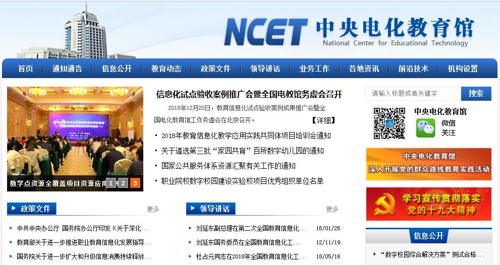 1978年,經(jīng)鄧小平等黨和國家領(lǐng)導(dǎo)人同意、國務(wù)院批準(zhǔn),中央電化教育館正式成立,成為教育部直屬的事業(yè)單位。中央電化教育館重點(diǎn)為基礎(chǔ)教育和職業(yè)教育服務(wù),其主要職責(zé):開發(fā)多種媒體教材,開展多種媒體教材的研究、交流和服務(wù)工作;開發(fā)教育教學(xué)資源,建設(shè)教育教學(xué)信息資源;承擔(dān)國家中小學(xué)現(xiàn)代遠(yuǎn)程教育工程項(xiàng)目的人員培訓(xùn),資源的整合、集成、發(fā)送,科研支撐與應(yīng)用指導(dǎo),技術(shù)支持與服務(wù)等工作;組織開展學(xué)校教育技術(shù)、信息技術(shù)教育理論與應(yīng)用的研究與實(shí)驗(yàn),開發(fā)、轉(zhuǎn)化和推廣相關(guān)的研究成果;開展各種教育技術(shù)的培訓(xùn)工作;主辦《中國電化教育》期刊;開展國際學(xué)術(shù)交流,承辦教育部委托的國際合作項(xiàng)目;承擔(dān)全國中小學(xué)教師教育技術(shù)能力建設(shè)計劃項(xiàng)目辦公室、中國教育技術(shù)協(xié)會秘書處及中小學(xué)專業(yè)委員會秘書處、期刊專業(yè)委員會秘書處工作。2004年,經(jīng)中央編制委員會辦公室批準(zhǔn),教育部基礎(chǔ)教育資源中心正式成立,與中央電化教育館合署辦公。其主要職責(zé):承擔(dān)基礎(chǔ)教育資源建設(shè)的規(guī)劃和協(xié)調(diào)工作;收集、發(fā)布基礎(chǔ)教育資源需求信息;組織基礎(chǔ)教育資源征集、引進(jìn)、開發(fā)和整合;建立基于中國教育衛(wèi)星寬帶多媒體傳輸網(wǎng)的專項(xiàng)資源管理和服務(wù)平臺,負(fù)責(zé)基礎(chǔ)教育資源發(fā)送、技術(shù)支持、用戶管理和反饋信息收集;承擔(dān)國家基礎(chǔ)教育資源庫及資源服務(wù)網(wǎng)站的管理工作;組織基礎(chǔ)教育資源的研究、評價、推薦和交流;開展教育部授權(quán)和委托的其它有關(guān)工作。在教育部的領(lǐng)導(dǎo)下,中央電化教育館和教育部基礎(chǔ)教育資源中心已經(jīng)形成了一支專業(yè)化的人才隊(duì)伍,全體員工奮發(fā)努力、開拓進(jìn)取,團(tuán)結(jié)全國電教系統(tǒng)共同奮斗,以農(nóng)村中小學(xué)現(xiàn)代遠(yuǎn)程教育工程和全國中小學(xué)教師教育技術(shù)能力建設(shè)計劃實(shí)施為重點(diǎn),以資源建設(shè)與服務(wù)為中心,在遠(yuǎn)程教育工程項(xiàng)目實(shí)施、教育信息資源建設(shè)、教育技術(shù)培訓(xùn)與應(yīng)用指導(dǎo)、教育技術(shù)研究與實(shí)驗(yàn)、技術(shù)支持與服務(wù)、國際交流與合作等方面,發(fā)揮了重要作用,取得了顯著成績,已經(jīng)成為我國基礎(chǔ)教育信息化建設(shè)中的重要支撐,教育信息化建設(shè)中的一支重要力量。中央電化教育館和教育部基礎(chǔ)教育資源中心將以科學(xué)發(fā)展觀為指導(dǎo),進(jìn)一步加強(qiáng)自身能力建設(shè),更好地發(fā)揮全國電教館系統(tǒng)的整體優(yōu)勢,開拓創(chuàng)新,扎實(shí)工作,為全面實(shí)施素質(zhì)教育,促進(jìn)義務(wù)教育均衡發(fā)展,推進(jìn)基礎(chǔ)教育信息化支持服務(wù)體系建設(shè),提升教育現(xiàn)代化水平,建設(shè)全民學(xué)習(xí)、終身學(xué)習(xí)的學(xué)習(xí)型社會做出應(yīng)有的貢獻(xiàn)。
