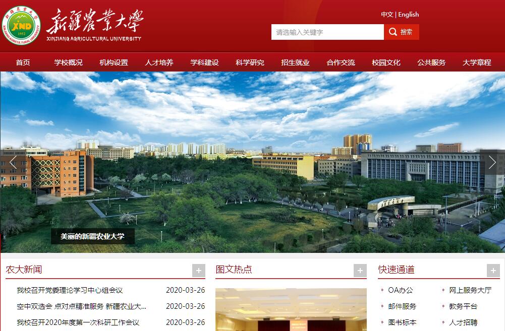 新疆農(nóng)業(yè)大學(xué)是一所以農(nóng)業(yè)科學(xué)為優(yōu)勢和特色,新疆維吾爾自治區(qū)重點(diǎn)建設(shè)的大學(xué)。學(xué)校位于烏魯木齊市美麗的老滿城。學(xué)校前身為八一農(nóng)學(xué)院,經(jīng)毛主席和中央軍委同意,由王震將軍于1952年在中國人民解放軍第二步兵學(xué)校的基礎(chǔ)上創(chuàng)建,隸屬于新疆軍區(qū),是新中國成立后新疆建立的第一所本科院校。1958年,學(xué)院劃歸新疆維吾爾自治區(qū)人民政府,更名為新疆八一農(nóng)學(xué)院。1995年,更名為新疆農(nóng)業(yè)大學(xué)。2006年獲教育部本科教學(xué)工作水平評估“優(yōu)秀”;2012年入選中西部高?;A(chǔ)能力建設(shè)工程高校。建校以來,學(xué)校始終秉承“自力更生、艱苦奮斗”的“南泥灣”精神,始終堅持“屯墾戍邊辦大學(xué),穩(wěn)疆興疆育人才”辦學(xué)宗旨,始終堅持“理論聯(lián)系實際、教學(xué)結(jié)合生產(chǎn)”的辦學(xué)方針,始終堅持社會主義辦學(xué)方向,在祖國西部譜寫了人才培養(yǎng)的壯麗篇章。學(xué)校已經(jīng)形成了本、碩、博完整的人才培養(yǎng)體系, 現(xiàn)有6個博士后流動站,8個博士學(xué)位一級學(xué)科授權(quán)點(diǎn),17個學(xué)術(shù)性碩士學(xué)位一級學(xué)科授權(quán)點(diǎn),7個專業(yè)學(xué)位碩士授權(quán)點(diǎn),59個本科專業(yè),分布在農(nóng)、理、工、經(jīng)、管、文、法等7個學(xué)科門類中。有19個學(xué)院,1個教學(xué)部,全日制在校生19531人。學(xué)?,F(xiàn)有教職工1594人,專任教師950人,其中教授140人,副教授310人,有博士學(xué)位的335人。近五年,榮獲國家教學(xué)成果二等獎1項,省部級教學(xué)成果獎6項,建成國家精品視頻公開課4門,先后有37人次獲得省部級以上先進(jìn)榮譽(yù)。圍繞現(xiàn)代農(nóng)牧業(yè)、特色林果業(yè)、區(qū)域發(fā)展等領(lǐng)域建有國家重點(diǎn)學(xué)科、部委重點(diǎn)學(xué)科4個,自治區(qū)級高峰、高原學(xué)科7個,省部級研究中心、重點(diǎn)實驗室15個。近五年,承擔(dān)國家科技支撐計劃、國家自然科學(xué)基金等縱向科研項目900項,到位經(jīng)費(fèi)近4億元。我校已成為新疆農(nóng)業(yè)產(chǎn)業(yè)發(fā)展人才培養(yǎng)、科技開發(fā)和技術(shù)服務(wù)的重要支撐。校本部占地面積117.72萬㎡,擁有南山實習(xí)林場、三坪農(nóng)場教學(xué)實習(xí)基地等6個校屬實習(xí)基地9萬余畝,152個校外教學(xué)實習(xí)基地。學(xué)校固定資產(chǎn)12.33億元,教學(xué)科研儀器價值2.68億元,校舍總建筑面積65.47萬㎡。學(xué)校是自治區(qū)首批綠色大學(xué),自治區(qū)文明單位,校園綠草如茵,鋪青疊翠,學(xué)習(xí)環(huán)境優(yōu)美。學(xué)校先后與美國、俄羅斯、哈薩克斯坦等15個國家和地區(qū)的33所大學(xué)及研究機(jī)構(gòu)建立了合作關(guān)系。在巴基斯坦建成的孔子學(xué)院成為全球100所示范孔子學(xué)院之一。成立“新疆中亞現(xiàn)代農(nóng)業(yè)科技創(chuàng)新與交流中心”等國際合作平臺。發(fā)起成立“絲綢之路沿線國家農(nóng)業(yè)院校聯(lián)盟”,有力推動了絲綢之路經(jīng)濟(jì)帶沿線國家農(nóng)業(yè)院校高等教育的共同發(fā)展。六十多年來,新疆農(nóng)業(yè)大學(xué)培養(yǎng)的12萬名畢業(yè)生積極投身于屯墾戍邊、穩(wěn)疆興疆的偉大事業(yè)。展望未來,新疆農(nóng)業(yè)大學(xué)將繼續(xù)以人才強(qiáng)校為根本、學(xué)科建設(shè)為支撐、教育質(zhì)量為生命、科技創(chuàng)新為動力、服務(wù)社會為己任、文化傳承創(chuàng)新為使命,圍繞區(qū)域發(fā)展,培養(yǎng)合格建設(shè)者和可靠接班人,向建設(shè)絲綢之路經(jīng)濟(jì)帶特色鮮明的高水平現(xiàn)代大學(xué)目標(biāo)奮進(jìn)。