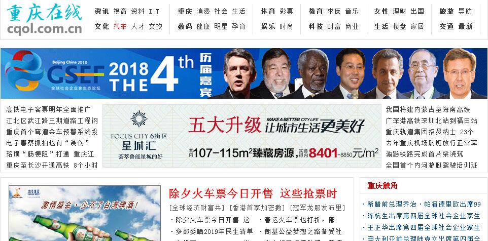 重慶在線www.cqol.com.cn是重慶資訊門戶網(wǎng)站,是城市網(wǎng)集團2010年網(wǎng)站聯(lián)盟重點打造的網(wǎng)站之一,通過資源的運營和資源整合,現(xiàn)在在網(wǎng)站流量\網(wǎng)站廣告運營\合作客戶回報等方面已經(jīng)取得同業(yè)公司的絕對領先;城市網(wǎng)的介紹 “都市生活搜索,城市時尚門戶”。城市網(wǎng)是城市網(wǎng)科技有限公司運營的網(wǎng)站,城市網(wǎng)cityy.com源于1997年注冊的xue.net,cityy.com深圳公司2005年獲得政府授于的牌照,原主營城市網(wǎng)絡門戶廣告;為了響應深圳“文化立市”,“科技與文化相結(jié)合”的號召,開始自主運營擁有自主知識產(chǎn)權(quán)的城市網(wǎng)cityy.com。城市網(wǎng)以城市生活實用信息服務及城市生活向?qū)榛A,主要提供生活預定、團購、分類、黃頁、教育等服務。城市網(wǎng)集團,是深圳同業(yè)公司注冊時間最早的公司之一,公司注冊資本在同業(yè)網(wǎng)站中最多,公司服務器托管于電信網(wǎng)通等三線機房中,同時運營團隊充實了原深圳熱線\奧一網(wǎng)\鴻波網(wǎng)\深圳新聞網(wǎng)等深圳知名公司運營團隊;城市網(wǎng)的企業(yè)文化:a.城市網(wǎng)的愿景。城市網(wǎng)的愿景是“有笑、有愛、有夢,向善、向上、向前”,從這些對仗工整的三段式理念中我們可感覺到青春與活力、樂觀與朝氣、氣魄與決心、理想與追求。在深圳高速高效、高強高壓高負何外圍大環(huán)境下,城市網(wǎng)員工源自內(nèi)心的感覺到因為有笑生活上是幸運而幸福的,因為有愛工作上是充滿著人緣與機緣的,因為有夢物質(zhì)上是富有而富足的。b.城市網(wǎng)的方法論。城市網(wǎng)的方法論是“優(yōu)道、優(yōu)術(shù)、優(yōu)勢,求實、求是、求美”,從城市網(wǎng)公司的方法論能真切的感受到這家公司及這個城市對知識與理論的重視、對實踐和探索的肯定、對高度和團隊的獨特理解,求實是一種深圳精神,求是一種理性指導,求美是一種人文追求體現(xiàn)有正是“時間就是金錢、效率就是生命”“空談誤國、實干興邦”的創(chuàng)業(yè)精神,城市網(wǎng)正有了這種創(chuàng)業(yè)精神方法論的指導,旗下諸多品牌獲得諸多媒體的好評與榮譽。重慶在線通過幾倍于同業(yè)公司的人力\資本\品牌投入為公司在行業(yè)處在領先地位奠定了堅實的基礎,同時也為客戶的實效和品牌推廣作了最有效的保障。