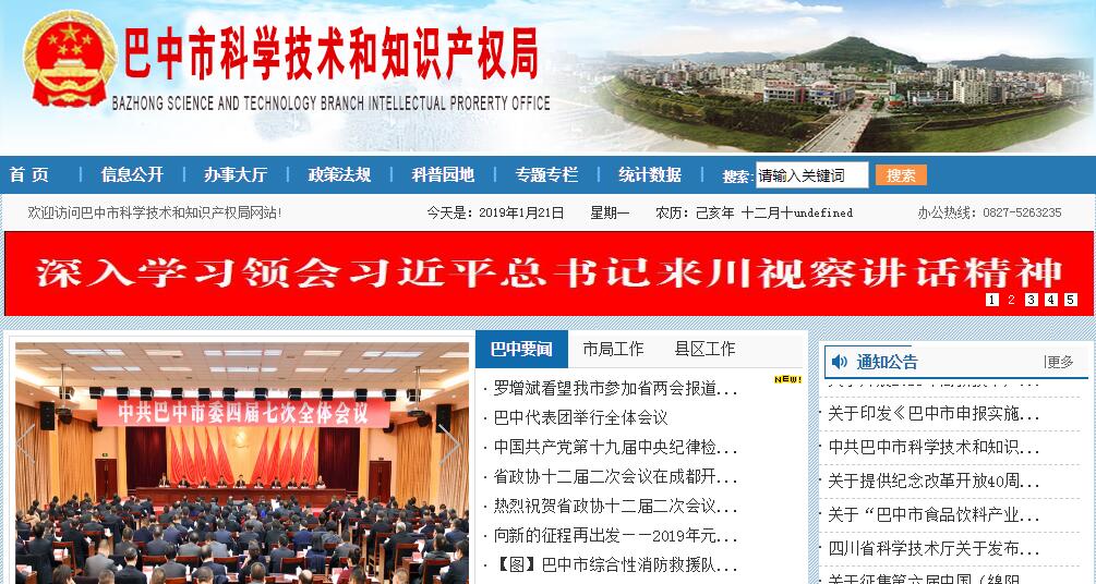 巴中市科學技術(shù)和知識產(chǎn)權(quán)局主要職責:(一)貫徹落實黨和國家以及四川省的科技法律、法規(guī)及方針、政策,結(jié)合巴中實際擬訂全市科技發(fā)展的規(guī)范性文件并監(jiān)督實施;組織擬訂全市科技促進經(jīng)濟與社會發(fā)展重大問題的解決方案,提出全市科技發(fā)展的重大布局和優(yōu)先領(lǐng)域。 (二)擬訂全市科技體制改革的規(guī)范性文件,指導市屬科研機構(gòu)科技體制改革工作;擬訂科技人才資源合理配置,會同有關(guān)部門擬訂全市科技人才隊伍建設(shè)規(guī)劃和提出建議。(三)組織擬訂全市科學技術(shù)發(fā)展的中長期規(guī)劃和年度計劃,擬訂科技獎勵、成果推廣、促進技術(shù)市場和科技中介組織發(fā)展的規(guī)范性文件;負責科技統(tǒng)計工作;負責本部門科技經(jīng)費的預(yù)決算編制和對科技經(jīng)費使用管理進行監(jiān)督管理,會同有關(guān)部門提出強化科技投入及優(yōu)化科技資源配置的建議。(四)會同有關(guān)部門擬訂產(chǎn)學研合作的規(guī)范性文件,負責全市與國、省有關(guān)高等院校、科研院所的產(chǎn)學研合作及科學技術(shù)的引進、消化、吸收再創(chuàng)新工作。(五)協(xié)調(diào)全市農(nóng)業(yè)、工業(yè)和社會事業(yè)方面的科技工作,指導農(nóng)業(yè)科技園區(qū)、科技示范基地和高新技術(shù)企業(yè)、創(chuàng)新型企業(yè)等工作,推進科技基礎(chǔ)條件平臺建設(shè)和科技資源共享;組織擬訂科普工作規(guī)劃,負責科學技術(shù)普及。(六)貫徹國家、省知識產(chǎn)權(quán)發(fā)展戰(zhàn)略,擬訂全市專利工作發(fā)展規(guī)劃并組織實施,指導專利行政執(zhí)法工作。(七)負責科技信息工作的組織協(xié)調(diào)、業(yè)務(wù)指導,推進科技文獻資源平臺建設(shè),開展情報調(diào)研服務(wù)和科技查新業(yè)務(wù),加快科技信息傳播。(八)承擔市星火計劃科技扶貧試驗區(qū)辦公室、市科學技術(shù)獎勵委員會辦公室、市科技顧問團辦公室和市知識產(chǎn)權(quán)工作領(lǐng)導小組辦公室的日常工作。(九)承辦市政府交辦的其他事項。