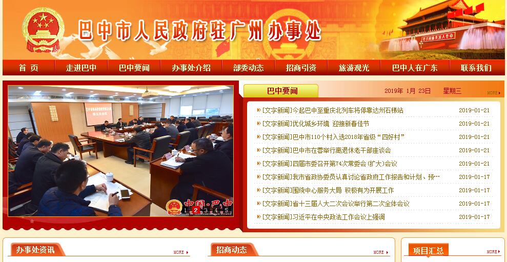 巴中市人民政府駐廣州辦事處主要職責:1、宣傳巴中,聯(lián)絡駐地。積極宣傳巴中,不斷提高巴中在駐地的知名度,擴大巴中對外影響力和吸引力,按照市委市政府的要求,做好我市與駐地及周邊地區(qū)黨政機關、科研院校及有關部門單位的政務聯(lián)系,加強巴中與粵閩瓊及港澳地區(qū)的友好往來。2、招商引資,區(qū)域合作。做好我市在粵閩瓊及港澳地區(qū)的招商引資工作,搞好巴中與上述區(qū)域的經(jīng)濟交流與合作,配合市級有關部門、各縣區(qū)及園區(qū)到駐地及周邊地區(qū)招商引資和引智,協(xié)助開展各類經(jīng)貿(mào)洽談會、招商說明會、業(yè)務洽談會和新聞發(fā)布會等經(jīng)貿(mào)活動。3、收集信息,提供參考。收集、整理駐地及周邊地區(qū)重要信息,及時向市委、市政府報送具有重要參考價值的政務、經(jīng)濟、科技、文化等信息,為市委、市政府領導決策提供信息服務,為部門和企業(yè)提供咨詢服務。4、聯(lián)系鄉(xiāng)友,做好服務。廣泛聯(lián)系在外巴中籍知名人士,促進巴中在外鄉(xiāng)友和企業(yè)家的社團組織建設,協(xié)助做好巴中籍在外流動黨團組織的建設和管理工作,參與巴中商會等的日常組織、指導、協(xié)調(diào)等方面工作,組織實施巴中籍企業(yè)家回鄉(xiāng)創(chuàng)引工程,促進在外巴中籍企業(yè)家回鄉(xiāng)創(chuàng)業(yè)和發(fā)展。5、信訪維穩(wěn),協(xié)助維權。為我市在外經(jīng)商務工人員做好聯(lián)絡協(xié)調(diào)和服務工作,負責做好工作區(qū)域巴中籍經(jīng)商務工人員的教育、引導工作,維護其合法權益,協(xié)助市人社局、醫(yī)保局等做好巴中在粵閩瓊等地的勞務輸出和民工服務工作。