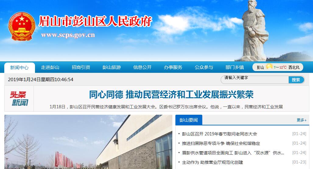 彭山區(qū)是四川省眉山市市轄區(qū),古稱武陽。彭山幅員面積465.32平方公里,轄2個街道辦事處、8個鎮(zhèn)、3個鄉(xiāng),2012年總?cè)丝?3萬。彭山是中國長壽之鄉(xiāng)、中國商品糧和瘦肉型豬生產(chǎn)基地、國家級生態(tài)示范區(qū)。彭山區(qū)境東臨仁壽縣,南接?xùn)|坡區(qū),西與蒲江縣、邛崍市交界,北與新津縣、成都市雙流區(qū)兩相連,屬成都經(jīng)濟(jì)區(qū)。2017年,彭山區(qū)地區(qū)生產(chǎn)總值(GDP)149.24億元,比2016年(下同)增長5.8%,增速全市第一;全社會固定資產(chǎn)投資完成230.10億元,增長1.2%。地方財政收入34.24億元,增長12.2%;地方一般公共預(yù)算收入實(shí)現(xiàn)15.68億元,增長5.3%;其中稅收收入8.44億元,下降7.6%。地方一般社會消費(fèi)品零售總額實(shí)現(xiàn)53.93億元,增長11.5%。第一產(chǎn)業(yè)增加值14.21億元,增長4.0%;第二產(chǎn)業(yè)增加值78.14億元,增長3.8%;第三產(chǎn)業(yè)增加值56.89億元,增長9.6%。三次產(chǎn)業(yè)對經(jīng)濟(jì)增長的貢獻(xiàn)率分別為6.8%、37.3%、55.9%,分別拉動經(jīng)濟(jì)增長0.4,2.2,3.2個百分點(diǎn),三次產(chǎn)業(yè)結(jié)構(gòu)優(yōu)化為9.5:52.4:38.1。全年非公有制經(jīng)濟(jì)增加值85.5億元,按可比價格計算增長6.0%,占GDP比重為57.3%,對經(jīng)濟(jì)增長的貢獻(xiàn)率為62%,拉動經(jīng)濟(jì)增長3.6個百分點(diǎn)。其中,第一產(chǎn)業(yè)非公有制經(jīng)濟(jì)增加值8.34億元,增長4%;第二產(chǎn)業(yè)非公有制經(jīng)濟(jì)增加值48.26億元,增長4.9%;第三產(chǎn)業(yè)非公有制經(jīng)濟(jì)增加值28.9億元,增長8.7%。規(guī)模以上工業(yè)增加值增長1%;城鎮(zhèn)居民人均可支配收入31939元,增長8.8%;農(nóng)村居民人均可支配收入16848元,增長9.4%。彭山是中華壽星始祖彭祖的主要生棲地,素有“長壽之鄉(xiāng)”的美譽(yù)。是全國唯一一個經(jīng)多學(xué)科專家論證的“中國長壽之鄉(xiāng)”。