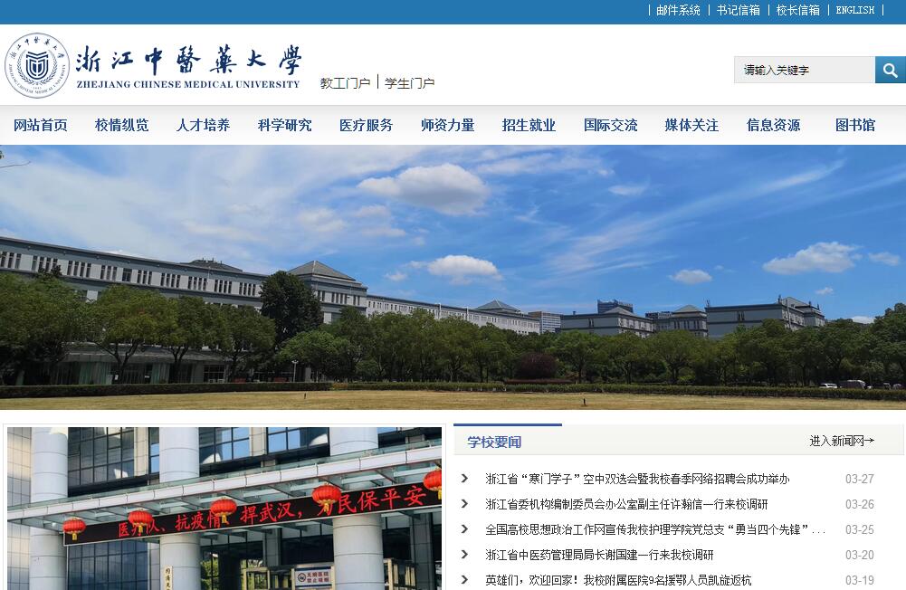 浙江中醫(yī)藥大學(xué)是以中醫(yī)中藥為優(yōu)勢(shì)特色學(xué)科的教學(xué)研究型大學(xué),是浙江省重點(diǎn)建設(shè)高校,是浙江省人民政府、國(guó)家中醫(yī)藥管理局、教育部共建高校。學(xué)校始創(chuàng)于1953年6月,時(shí)名為浙江省中醫(yī)進(jìn)修學(xué)校;1959年6月成立浙江中醫(yī)學(xué)院,校址位于杭州市慶春街原浙江大學(xué)舊址;1998年獲得博士學(xué)位授予權(quán);2000年3月整體遷至杭州市濱江高教園區(qū)辦學(xué);2006年2月更名為浙江中醫(yī)藥大學(xué);2015年9月富春校區(qū)(濱江學(xué)院遷建工程)投入使用,開啟兩校區(qū)辦學(xué)模式。學(xué)校占地千畝,總建筑面積逾47萬(wàn)平方米。學(xué)校下設(shè)第一臨床醫(yī)學(xué)院、第二臨床醫(yī)學(xué)院、第三臨床醫(yī)學(xué)院/康復(fù)醫(yī)學(xué)院、第四臨床醫(yī)學(xué)院、基礎(chǔ)醫(yī)學(xué)院/公共衛(wèi)生學(xué)院、口腔醫(yī)學(xué)院、藥學(xué)院、護(hù)理學(xué)院、醫(yī)學(xué)技術(shù)學(xué)院、生命科學(xué)學(xué)院、人文與管理學(xué)院以及馬克思主義學(xué)院、成人教育學(xué)院/繼續(xù)教育學(xué)院、國(guó)際教育學(xué)院,舉辦1所獨(dú)立學(xué)院(濱江學(xué)院)。擁有附屬第一醫(yī)院(浙江省中醫(yī)院)、附屬第二醫(yī)院(浙江省新華醫(yī)院)、附屬第三醫(yī)院(浙江省中山醫(yī)院)3所直屬附屬醫(yī)院和21所非直屬附屬醫(yī)院。學(xué)校是全國(guó)首批招收和培養(yǎng)中醫(yī)藥研究生、在浙江省屬高校中首批獲得博士學(xué)位授予權(quán)和博士后科研流動(dòng)站的院?!,F(xiàn)有中醫(yī)學(xué)、中藥學(xué)、中西醫(yī)結(jié)合3個(gè)一級(jí)學(xué)科博士學(xué)位授權(quán)點(diǎn),中醫(yī)學(xué)、中藥學(xué)、中西醫(yī)結(jié)合、臨床醫(yī)學(xué)、護(hù)理學(xué)、藥學(xué)、醫(yī)學(xué)技術(shù)、基礎(chǔ)醫(yī)學(xué)8個(gè)一級(jí)學(xué)科碩士學(xué)位授權(quán)點(diǎn),以及中醫(yī)博士專業(yè)學(xué)位授予權(quán)和口腔醫(yī)學(xué)等6個(gè)碩士專業(yè)學(xué)位授予權(quán);建有中醫(yī)學(xué)、中藥學(xué)、中西醫(yī)結(jié)合3個(gè)博士后科研流動(dòng)站;開設(shè)本科專業(yè)31個(gè),涉及醫(yī)學(xué)、理學(xué)、工學(xué)、管理學(xué)、文學(xué)五大學(xué)科門類。現(xiàn)有全日制在校生15200余人(含獨(dú)立學(xué)院),其中本科生12800余人、碩士生1848人、博士生193人、學(xué)歷留學(xué)生360人。學(xué)校是國(guó)家創(chuàng)新人才培養(yǎng)示范基地,自主培養(yǎng)了中國(guó)工程院院士、973計(jì)劃項(xiàng)目首席科學(xué)家、國(guó)醫(yī)大師、全國(guó)名中醫(yī)、國(guó)家“新世紀(jì)百千萬(wàn)人才工程”人選等一批高層次人才。現(xiàn)有在職教職工(校本部)1120余人,正高級(jí)專業(yè)技術(shù)人員320余人(含直屬附屬醫(yī)院)。擁有浙江省特級(jí)專家、國(guó)務(wù)院特殊津貼專家、國(guó)家優(yōu)秀青年科學(xué)基金獲得者、中醫(yī)藥高等學(xué)校教學(xué)名師、浙江省國(guó)醫(yī)名師、浙江省“千人計(jì)劃”專家、浙江省“錢江學(xué)者”特聘教授等一大批專家學(xué)者。學(xué)校堅(jiān)持把立德樹人作為立身之本,著力提升教育教學(xué)質(zhì)量。擁有國(guó)家級(jí)特色專業(yè)5個(gè),浙江省“十三五”優(yōu)勢(shì)專業(yè)、特色專業(yè)14個(gè),國(guó)家精品課程9門,國(guó)家級(jí)教學(xué)團(tuán)隊(duì)1支。建有國(guó)家級(jí)實(shí)驗(yàn)教學(xué)示范中心等一批教學(xué)平臺(tái)。獲國(guó)家級(jí)教學(xué)成果獎(jiǎng)3項(xiàng)。兩次獲教育部本科教學(xué)工作水平評(píng)估優(yōu)秀。中醫(yī)學(xué)、臨床醫(yī)學(xué)、中藥學(xué)3個(gè)專業(yè)通過教育部專業(yè)認(rèn)證。2017年通過教育部本科教學(xué)工作審核評(píng)估。學(xué)生生源質(zhì)量和培養(yǎng)質(zhì)量不斷提高,2016屆(畢業(yè)后一年)本科畢業(yè)生職業(yè)發(fā)展與人才培養(yǎng)質(zhì)量排名位居全省本科院校第二(據(jù)浙江省教育評(píng)估院調(diào)查數(shù)據(jù)),近些年畢業(yè)生參加醫(yī)師資格考試通過率居全國(guó)同類院校前列。學(xué)校全力推進(jìn)學(xué)科建設(shè),不斷提升科技創(chuàng)新和服務(wù)能力。在浙江省屬高校中首批獲得國(guó)家重點(diǎn)學(xué)科(中醫(yī)臨床基礎(chǔ));中醫(yī)學(xué)、中藥學(xué)入選浙江省第二批重點(diǎn)建設(shè)高校優(yōu)勢(shì)特色學(xué)科;臨床醫(yī)學(xué)學(xué)科領(lǐng)域進(jìn)入ESI全球排名前1%;獲浙江省“十三五”一流學(xué)科建設(shè)項(xiàng)目A類3個(gè)、B類6個(gè)。建有國(guó)家中醫(yī)臨床研究基地、國(guó)家中醫(yī)藥科研重點(diǎn)實(shí)驗(yàn)室、浙江省“2011協(xié)同創(chuàng)新中心”、浙江省重點(diǎn)實(shí)驗(yàn)室、浙江省工程研究中心等一批科創(chuàng)平臺(tái)。獲國(guó)家科技進(jìn)步獎(jiǎng)、國(guó)家技術(shù)發(fā)明獎(jiǎng)5項(xiàng),浙江省科學(xué)技術(shù)一等獎(jiǎng)10項(xiàng)。主辦《浙江中醫(yī)藥大學(xué)學(xué)報(bào)》《浙江臨床醫(yī)學(xué)》2種學(xué)術(shù)期刊。先后與省內(nèi)外10余個(gè)市(縣、區(qū))以及浙江