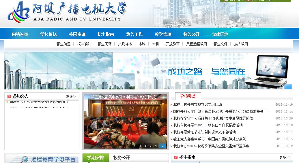 阿壩廣播電視大學(xué)于1995年成立,是經(jīng)國(guó)家教育部、中央廣播電視大學(xué)、四川省教育廳、阿壩州人民政府批準(zhǔn)同意設(shè)立的具有獨(dú)立招生資格的大專(zhuān)院校,業(yè)務(wù)上接受中央廣播電視大學(xué)和四川廣播電視大學(xué)的領(lǐng)導(dǎo)和指導(dǎo),屬于國(guó)民教育系列院校。電大的高等學(xué)歷畢業(yè)證書(shū)亦為歐美等世界各國(guó)所承認(rèn),被稱(chēng)為“國(guó)際學(xué)歷綠卡”。辦學(xué)17年來(lái),學(xué)校在中共阿壩州委、州人民政府的正確領(lǐng)導(dǎo)下,在省電大以及各有關(guān)部門(mén)和社會(huì)各界的關(guān)心、支持下,全校師生員工始終保持著“嚴(yán)謹(jǐn)、求實(shí)、團(tuán)結(jié)、自強(qiáng)”的精神,堅(jiān)定不移地朝著“爭(zhēng)創(chuàng)全國(guó)藏區(qū)一流電大”的目標(biāo)奮勇前進(jìn)。學(xué)校機(jī)構(gòu)完善,配備校黨委書(shū)記、校長(zhǎng)1人,校黨委委員、副校長(zhǎng)2人,下設(shè)辦公室、教學(xué)處、教務(wù)處、總務(wù)處、招生辦、信息中心、阿壩廣播電視大學(xué)奧鵬遠(yuǎn)程學(xué)習(xí)中心等職能處室。我校也是全國(guó)高校網(wǎng)絡(luò)教育部分公共基礎(chǔ)課統(tǒng)一考試阿壩州唯一考點(diǎn)。近年來(lái),學(xué)校搶抓災(zāi)后重建的大好機(jī)遇,于2010年8月至2011年12月在汶川雁門(mén)鄉(xiāng)異址新建新校區(qū),并于2012年3月正式遷入新校區(qū)。新建后的校園面積0.7299公頃,有較完備的基礎(chǔ)設(shè)施和較先進(jìn)的硬件設(shè)備。作為一所新型的市州級(jí)開(kāi)放性大學(xué),建校17年來(lái),學(xué)校辦學(xué)條件大為改善,辦學(xué)水平日益提高,辦學(xué)綜合實(shí)力不斷增強(qiáng),已經(jīng)形成了由校本部、10個(gè)縣級(jí)電大工作站、4個(gè)教學(xué)部和1個(gè)直屬部構(gòu)成的辦學(xué)網(wǎng)絡(luò)(“人網(wǎng)”)和覆蓋全州各縣的衛(wèi)星電視網(wǎng)絡(luò)(“天網(wǎng)”)以及基于互聯(lián)網(wǎng)的寬帶專(zhuān)用網(wǎng)現(xiàn)代遠(yuǎn)程教育系統(tǒng)(“地網(wǎng)”),三網(wǎng)相互配合、互為補(bǔ)充,為學(xué)生鞏固和提高專(zhuān)業(yè)知識(shí)及拓寬知識(shí)面提供了良好的條件,已經(jīng)形成較為完善的開(kāi)展現(xiàn)代遠(yuǎn)程教育的多維平臺(tái)和功能完備的教育質(zhì)量保障體系,成為構(gòu)建終身教育體系的重要組成部分。桃李不言,下自成蹊。17年來(lái),學(xué)校緊密結(jié)合阿壩州經(jīng)濟(jì)和社會(huì)發(fā)展的實(shí)際,本著“盡職教育、效力阿壩、立足實(shí)用、服務(wù)基層”的辦學(xué)理念,堅(jiān)持面向社會(huì)、面向基層、面向農(nóng)牧區(qū),多層次、多規(guī)格、多功能、全方位培養(yǎng)“下得去、用得上、留得住”的應(yīng)用型高級(jí)專(zhuān)門(mén)人才。學(xué)校開(kāi)設(shè)有文、理、工、醫(yī)、管理、經(jīng)濟(jì)、法律等七大學(xué)科46個(gè)專(zhuān)業(yè),培養(yǎng)大中專(zhuān)及本科畢業(yè)生11865人,開(kāi)展非學(xué)歷教育培訓(xùn)12949人次。2012年7月5日,教育部批文同意在中央廣播電視大學(xué)基礎(chǔ)上建立國(guó)家開(kāi)放大學(xué),同時(shí)希望成立后的國(guó)家開(kāi)放大學(xué)能夠解放思想、更新理念,深化改革、科學(xué)定位,提高質(zhì)量、辦出特色,努力滿(mǎn)足人民群眾多樣化、個(gè)性化的學(xué)習(xí)需要,為構(gòu)建靈活開(kāi)放的終身教育體系作出應(yīng)有的貢獻(xiàn)。展望未來(lái),我們?nèi)沃氐肋h(yuǎn),面臨新的機(jī)遇和挑戰(zhàn),阿壩廣播電視大學(xué)將充分發(fā)揮定位優(yōu)勢(shì)、系統(tǒng)網(wǎng)絡(luò)優(yōu)勢(shì)、辦學(xué)體制優(yōu)勢(shì)、教育模式優(yōu)勢(shì)、教學(xué)資源優(yōu)勢(shì)和辦學(xué)隊(duì)伍優(yōu)勢(shì),繼續(xù)保持“嚴(yán)謹(jǐn)、求實(shí)、團(tuán)結(jié)、自強(qiáng)”的精神,改革創(chuàng)新的銳氣,求真務(wù)實(shí)的作風(fēng),緊密結(jié)合實(shí)際,把握新形勢(shì)下成人教育的特點(diǎn)和規(guī)律,形成新思路,探索新途徑,打造新品牌,力爭(zhēng)在推進(jìn)我州高等教育大眾化、教育技術(shù)信息化、社區(qū)教育實(shí)踐化和構(gòu)建終身教育體系中再創(chuàng)佳績(jī)。