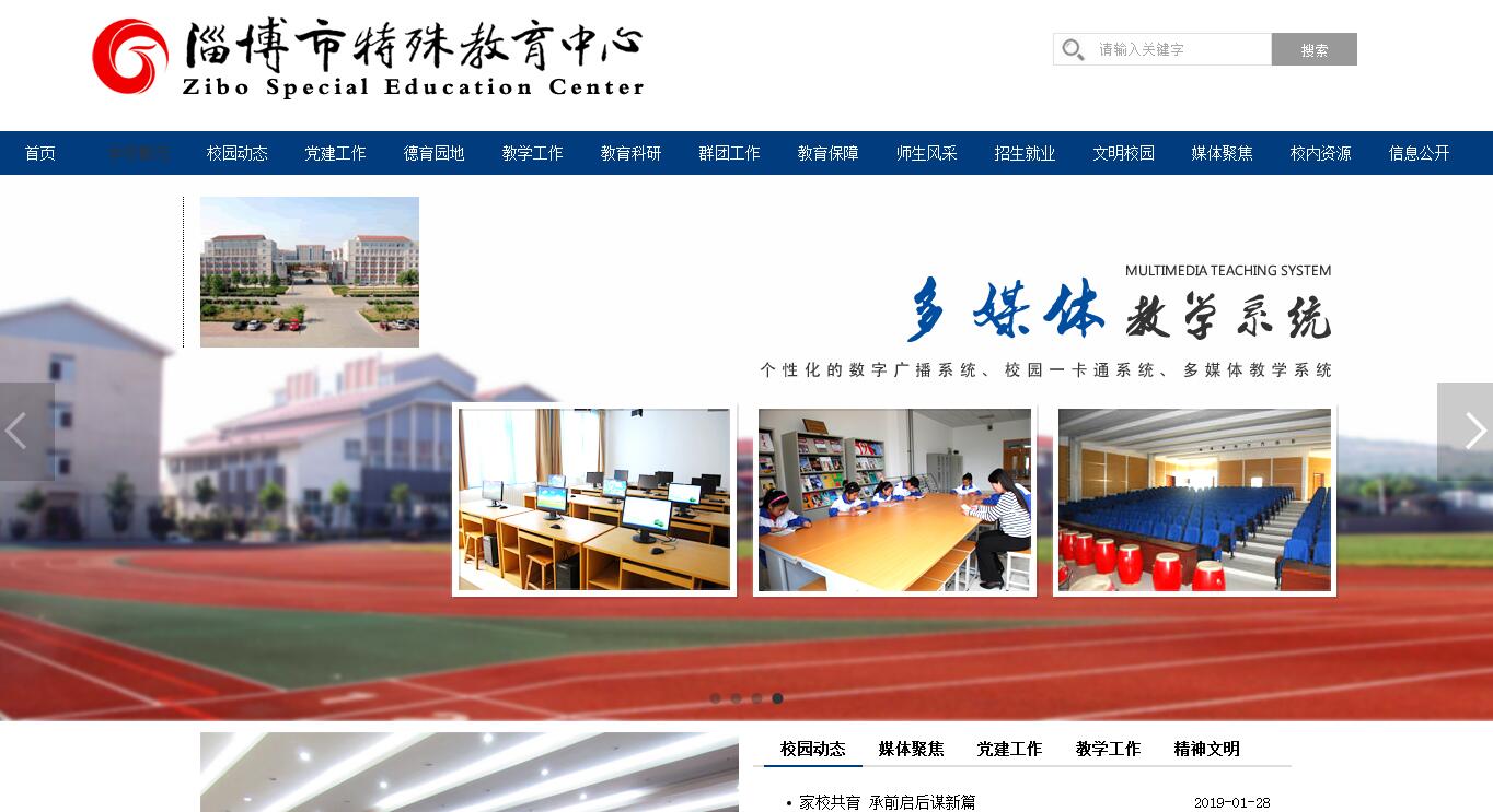 淄博市特殊教育于1959年12月在博山創(chuàng)辦,由最初的“淄博市盲聾啞兒童學(xué)?!睌?shù)易校名,屢遷其址,歷盡滄桑,走過了五十二個(gè)春秋,寫下了光輝燦爛的篇章。淄博市特殊教育中心是淄博市政府為市民辦的實(shí)事之一,主要辦學(xué)功能為盲聾學(xué)前教育、義務(wù)教育、高中教育、職業(yè)教育。學(xué)校于2008年底開工建設(shè),2011年10月投入使用。學(xué)校位于高新區(qū)風(fēng)景優(yōu)美的花山風(fēng)景區(qū)西側(cè),設(shè)計(jì)規(guī)模為51個(gè)班,規(guī)劃占地100畝,11個(gè)單體,總建筑面積3.5 萬M2,預(yù)算投資9800萬元。是一所按照最新的《特殊教育學(xué)校設(shè)計(jì)規(guī)范》設(shè)計(jì)施工的標(biāo)準(zhǔn)化、現(xiàn)代化、園林化、網(wǎng)絡(luò)化特殊教育學(xué)校。學(xué)校布局分為東部建筑區(qū)和西部運(yùn)動(dòng)區(qū)兩大部分。建筑區(qū)分東西兩排并行排列,兩排建筑之間為寬50米的廣場(chǎng)和綠化帶,11條道路分7橫4縱貫穿于各單體之間,整個(gè)建筑群為一個(gè)平直方正的布局,相鄰單體之間的院落式設(shè)計(jì)。在規(guī)劃分區(qū)設(shè)計(jì)上,體現(xiàn)了按殘疾類別分區(qū)、學(xué)段分區(qū)、功能分區(qū)、動(dòng)靜分區(qū)、人車分區(qū)等。在無障礙設(shè)計(jì)上,體現(xiàn)了建筑無障礙、道路無障礙、信息無障礙、活動(dòng)無障礙。在規(guī)劃功能設(shè)計(jì)上,體現(xiàn)了教師辦公室與教室相鄰,教學(xué)輔助用房與普通教室相鄰,盲聾功能用房全部分開,盲聾活動(dòng)場(chǎng)地盡量分開,食堂餐廳及校醫(yī)院位于盲聾部的中心區(qū)域。在信息化設(shè)計(jì)上,主要是個(gè)性化的數(shù)字廣播系統(tǒng)、校園一卡通系統(tǒng)、多媒體教學(xué)系統(tǒng)等。優(yōu)美的校園環(huán)境是教育活動(dòng)的一個(gè)重要載體,“園林化”是校園景觀綠化設(shè)計(jì)的核心目標(biāo)。校園內(nèi)遍植蒼松、修竹、古藤、臘梅等60余種花草樹木,四季常綠,三季有花,綠樹成蔭,豐富了學(xué)校課程教學(xué)資源。市特殊教育中心由市盲校和市聾校合并而成,于11月中旬遷入新校址,合并后有15個(gè)盲生班,22個(gè)聾生班。學(xué)校領(lǐng)導(dǎo)班子于11月5日正式組建完成。學(xué)校發(fā)展定位是將淄博市特教中心建成以盲聾兒童為主的各類特殊兒童的康復(fù)教育中心、盲聾兒童少年的文化教育中心、全市各類殘疾青少年的職業(yè)教育中心、全市隨班就讀指導(dǎo)管理中心、全市特殊教育教科研資源中心、全市特殊教育師資培訓(xùn)中心,建設(shè)成為全市社會(huì)事業(yè)和精神文明建設(shè)的窗口,努力實(shí)現(xiàn)辦學(xué)條件標(biāo)準(zhǔn)化、學(xué)校管理科學(xué)化、教師隊(duì)伍專業(yè)化、學(xué)生素質(zhì)適應(yīng)化,建設(shè)成為全省一流、全國聞名、國際有影響的特殊教育學(xué)校。