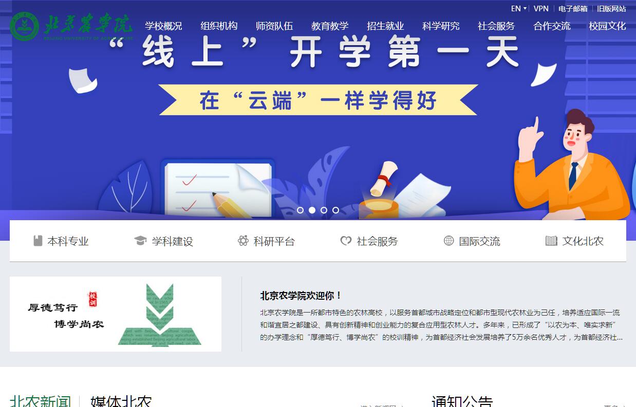 北京農(nóng)學(xué)院的前身河北省通縣農(nóng)業(yè)學(xué)校,創(chuàng)建于1956年。1958年,河北省通縣農(nóng)業(yè)學(xué)校與北京市農(nóng)業(yè)合作干部學(xué)校合并,更名為北京市農(nóng)業(yè)學(xué)校。1965年,北京市在北京市農(nóng)業(yè)學(xué)校的基礎(chǔ)上建立半農(nóng)半讀的北京農(nóng)業(yè)勞動大學(xué)。1978年,經(jīng)國務(wù)院批準(zhǔn)更名為北京農(nóng)學(xué)院。學(xué)?,F(xiàn)占地面積約1000畝,包括校本部、東校區(qū)、北校區(qū)、大學(xué)科技園市場。另外,學(xué)校建有千畝大學(xué)科技園農(nóng)場、萬畝大學(xué)科技園林場。學(xué)校先后被授予北京市花園式單位、北京市文明校園、首都文明單位標(biāo)兵、全國文明單位等稱號。學(xué)校現(xiàn)有12個二級學(xué)院和3個教學(xué)部,有教職員工1200余人,其中專任教師500余人?,F(xiàn)有研究生、本科生、高職生、留學(xué)生等各類在校生8000余人,業(yè)已形成以本科教育和研究生教育為主,兼有留學(xué)生教育、高等職業(yè)教育和繼續(xù)教育的多類型、多層次的高等農(nóng)業(yè)教育體系。學(xué)?,F(xiàn)有7個一級學(xué)科碩士學(xué)位授權(quán)點,4個類別專業(yè)學(xué)位授權(quán)點,5個北京市重點建設(shè)學(xué)科,實現(xiàn)了12個二級學(xué)科、14個專業(yè)領(lǐng)域的碩士招生。有33個本科專業(yè)(其中國際合作辦學(xué)專業(yè)3個)和8個??茖I(yè),園藝、動物醫(yī)學(xué)專業(yè)為一類本科招生專業(yè),園藝專業(yè)為國家級本科專業(yè)綜合改革試點單位,園藝、動物醫(yī)學(xué)、農(nóng)林經(jīng)濟管理3個專業(yè)為國家級特色建設(shè)專業(yè),農(nóng)學(xué)、園藝、動物醫(yī)學(xué)、農(nóng)林經(jīng)濟管理、園林、食品科學(xué)與工程等6個專業(yè)為北京市級特色建設(shè)專業(yè)。學(xué)校堅持以培養(yǎng)具有創(chuàng)新精神和創(chuàng)業(yè)能力的復(fù)合應(yīng)用型現(xiàn)代農(nóng)林人才為目標(biāo),努力打造和完善都市型現(xiàn)代農(nóng)業(yè)高等教育體系。學(xué)校創(chuàng)新構(gòu)建了“3+1”人才培養(yǎng)模式,實施“卓越農(nóng)林人才”培養(yǎng)計劃,探索與政府、企業(yè)、科研院所、國內(nèi)外農(nóng)林高校聯(lián)合培養(yǎng)人才新機制?!笆濉逼陂g,學(xué)校創(chuàng)建的“都市型現(xiàn)代農(nóng)業(yè)人才培養(yǎng)模式創(chuàng)新試驗區(qū)”被批準(zhǔn)為北京市級人才培養(yǎng)模式創(chuàng)新試驗區(qū),都市型現(xiàn)代農(nóng)業(yè)人才培養(yǎng)創(chuàng)新與實踐相關(guān)成果先后獲得國家教學(xué)成果二等獎1項、北京市教育教學(xué)成果一等獎3項、二等獎9項,先后建成2個國家級、4個北京市級實驗教學(xué)示范中心,2個北京高校示范性校內(nèi)實踐創(chuàng)新基地,1個國家級、5個北京市級校外人才培養(yǎng)基地。學(xué)校堅持“育人為本、德育為先”的育人理念,大力開展素質(zhì)教育、科技競賽和豐富多彩的文體活動?!笆濉逼陂g,學(xué)生在“挑戰(zhàn)杯”全國大學(xué)生系列科技競賽、首都大學(xué)生創(chuàng)業(yè)大賽等活動中獲省部級以上獎勵1000余項,其中一等獎100余項。畢業(yè)生就業(yè)率始終保持在96%以上,39個學(xué)校資助的學(xué)生創(chuàng)業(yè)團隊創(chuàng)辦企業(yè)走向市場,學(xué)校被評為“北京地區(qū)高校示范性就業(yè)中心”。學(xué)校培養(yǎng)的3萬余名優(yōu)秀畢業(yè)生,扎根基層,踏實勤勉,成為首都經(jīng)濟社會發(fā)展特別是農(nóng)業(yè)行業(yè)發(fā)展中的骨干力量,在他們當(dāng)中涌現(xiàn)出了優(yōu)秀的政府管理人員、杰出的農(nóng)業(yè)領(lǐng)域?qū)<覍W(xué)者、頗具影響力的涉農(nóng)企業(yè)家。尤其是大學(xué)生“村官”培養(yǎng)工作得到了黨和國家領(lǐng)導(dǎo)人李源潮同志批示:“北京農(nóng)學(xué)院培養(yǎng)‘村官’的經(jīng)驗很好,為新農(nóng)村建設(shè)輸送了新型人才?!睂W(xué)校構(gòu)建的都市型現(xiàn)代農(nóng)業(yè)科技創(chuàng)新體系,重點解決了一批北京乃至全國都市農(nóng)業(yè)、現(xiàn)代農(nóng)業(yè)發(fā)展中的重大問題和關(guān)鍵技術(shù)。農(nóng)業(yè)部都市農(nóng)業(yè)(北方)重點實驗室、農(nóng)業(yè)應(yīng)用新技術(shù)北京市重點實驗室、北京市鄉(xiāng)村景觀規(guī)劃設(shè)計工程技術(shù)研究中心等20個省部級科研平臺和成果轉(zhuǎn)化基地,4個北京市級科技創(chuàng)新團隊,一批入選國家和北京市現(xiàn)代農(nóng)業(yè)產(chǎn)業(yè)技術(shù)體系的專家學(xué)者,全力服務(wù)于首都及京津冀重大戰(zhàn)略需求、現(xiàn)代農(nóng)業(yè)產(chǎn)業(yè)發(fā)展需求、涉農(nóng)企業(yè)轉(zhuǎn)化需求和城市食品安全需求,形成的都市農(nóng)林業(yè)發(fā)展理論、現(xiàn)代種業(yè)、食品安全、生態(tài)環(huán)境四大主攻研究方向具有鮮明特色與優(yōu)勢?!笆濉逼陂g,學(xué)校主持的各級各類科研項目2092項,總經(jīng)費45486萬元,獲得省部級以上科技成果獎40項,其中國家級科技成果獎3項。學(xué)校構(gòu)建的都市型現(xiàn)代農(nóng)業(yè)社會服務(wù)體系,全方位、多層次、多功能地服務(wù)政府決策、服務(wù)產(chǎn)業(yè)發(fā)展、服務(wù)涉農(nóng)企業(y