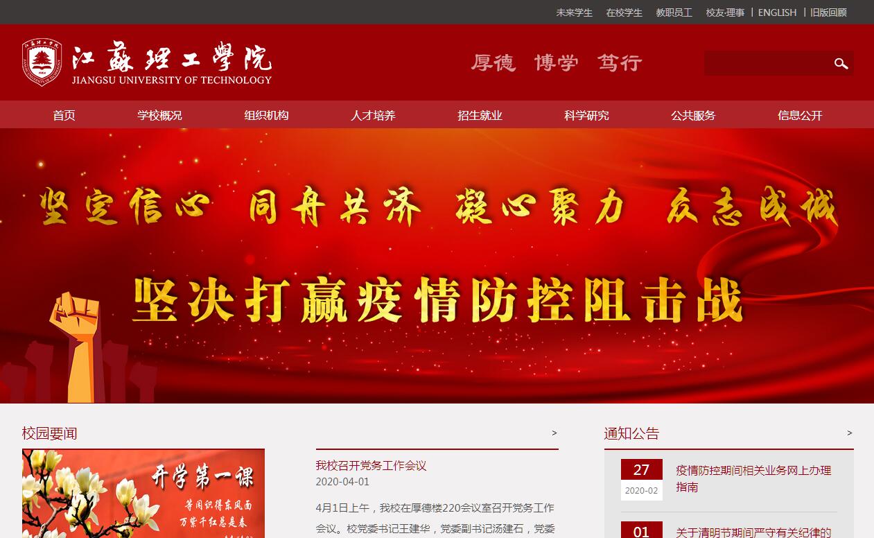 江蘇理工學院是省屬全日制普通高校,地處被譽為“千載讀書地,現(xiàn)代創(chuàng)新城”的國家歷史文化名城、長江三角洲重要的現(xiàn)代制造業(yè)基地——江蘇省常州市。學校創(chuàng)建于1984年,歷經(jīng)常州職業(yè)師范學院、常州技術師范學院、江蘇技術師范學院等時期,2012年更名為江蘇理工學院。學校是教育部本科教學工作水平評估優(yōu)秀單位、“服務國家特殊需求人才培養(yǎng)項目”碩士專業(yè)學位研究生培養(yǎng)試點單位、全國首批職教師資培訓重點建設基地和江蘇省首批決策咨詢研究基地。學校占地面積近1500畝,建筑面積50萬余平方米,教學儀器設備總值近3億元,中外文藏書160余萬冊。設有機械工程學院、化學與環(huán)境工程學院、教育學院等21個教學科研單位,建有新能源汽車學院、醫(yī)療器械學院、劉海粟藝術學院、趙元任語言文化傳播學院等多個行業(yè)學院和研究院,開設59個本科專業(yè),在機械工程、環(huán)境工程兩個領域招收碩士專業(yè)學位研究生,形成了以工科為主,多學科協(xié)調發(fā)展的辦學格局。學校現(xiàn)有全日制在校本科生近18000人、碩士研究生220余人、留學生120余人?,F(xiàn)有教職工1300余人,專任教師1000余人、中國科學院院士1人(雙聘)、正高職稱教師130余人、博士學位教師310余人、碩博研究生導師170余人,聘請學術和產(chǎn)業(yè)界知名專家100余人擔任特聘教授或兼職教授。有多人享受國務院特殊津貼,或獲全國優(yōu)秀教師、江蘇省有突出貢獻的中青年專家、江蘇省教學名師等榮譽稱號,有100余人次獲批江蘇省“333工程”“青藍工程”等中青年科技領軍人才、學術帶頭人、骨干教師。學校堅持“以人為本、注重能力、分型培養(yǎng)”的人才培養(yǎng)理念,以行業(yè)產(chǎn)業(yè)定專業(yè)布局,以經(jīng)濟社會發(fā)展需求定人才規(guī)格,以科技進步和產(chǎn)業(yè)升級定教學內容,培養(yǎng)應用型高級專門人才。現(xiàn)有教育部產(chǎn)教融合創(chuàng)新基地合作項目、國家級大學生校外實踐教學基地、江蘇省現(xiàn)代職教體系試點項目等省級以上人才培養(yǎng)項目(基地)20余項(個),國家級特色專業(yè)、國家級精品資源共享課等省級以上品牌專業(yè)、精品課程20余個(門),獲得省級以上教學成果獎19項。學生獲“小平科技創(chuàng)新團隊”、“挑戰(zhàn)杯”全國大學生課外學術科技作品競賽二等獎、“挑戰(zhàn)杯”全國大學生創(chuàng)業(yè)計劃競賽銀獎、全國大學生“飛思卡爾”杯智能汽車競賽一等獎等省級以上各類科技創(chuàng)新創(chuàng)業(yè)競賽獎1000余項。建校以來,為地方經(jīng)濟社會發(fā)展培養(yǎng)輸送了6萬余名畢業(yè)生,培訓了數(shù)萬名中高職教師及其他專業(yè)技術人員。畢業(yè)生深受用人單位的歡迎,就業(yè)率持續(xù)保持在95%以上。學校緊密結合國家發(fā)展戰(zhàn)略和區(qū)域發(fā)展特色,優(yōu)化學科結構,加強應用研究,形成了環(huán)境科學與工程、機械工程、教育學等一批引領性學科,打造了“資源循環(huán)利用”、“職業(yè)技術教育”等學科亮點?,F(xiàn)有江蘇省重點(培育、建設)學科7個,國家級技術轉移中心、國家大學科技園分園、省工程(技術研究)中心、省高校重點(建設)實驗室等省級以上學科科研平臺近20個。近5年,學校主持承擔了國家科技支撐計劃重大項目、國家自然科學基金項目、國家社會科學基金項目等國家和省部級科研項目200余項,橫向科研課題500余項,科研經(jīng)費近3億元,獲得省部級以上科研成果獎50余項,國家授權發(fā)明專利250余件。學校充分發(fā)揮高校人才、資源和技術優(yōu)勢,加強智庫建設,推進與行業(yè)企業(yè)產(chǎn)業(yè)的工程技術協(xié)同創(chuàng)新,加大產(chǎn)業(yè)從業(yè)人員技術技能培訓,關注地方文化傳承與創(chuàng)新,深化與地方政府、行業(yè)、企業(yè)(社區(qū))的多層次合作,與10多個省內外市、區(qū)建立校地戰(zhàn)略合作關系,與行業(yè)協(xié)會、知名企業(yè)、大院大所共建產(chǎn)學研基地150余家及研究機構40余家,與地方政府部門共建常州產(chǎn)業(yè)研究院、常州市名人研究院、常州市青少年心理研究與指導中心等多個研究平臺,為地方經(jīng)濟社會發(fā)展和產(chǎn)業(yè)升級作出了積極貢獻。學校大力實施國際化發(fā)展戰(zhàn)略,積極引進國際先進辦學理念、標準和資源,重點打造以中德合作為主的國際合作辦學特色,先后與德國、美國、英國、韓國、烏克蘭、以色列、哈薩克斯坦以及澳門、臺灣等國家和地區(qū)的20余所高校建立緊密的合作與交流關系。每年選派專家、學者赴德、美、英、加、日、韓、澳等國家進行訪學或交流,聘請外籍教師百余名來校從事教學、科研活動。目前面向韓國、俄羅斯及中亞國家招收留學生。學校獲得“江蘇省文明單位”“江蘇省高校先進基層黨組織”“全國語言文字工作先進集體”“全國五四紅旗團委”“全國大學生暑期社會實踐活動先進單位”“江蘇省高校和諧校園”“江蘇省師資隊伍建設先進高?!薄敖K省高等學校思想政治教育工作先進集體”“江蘇省教育科研先進集體”“江蘇省高校畢業(yè)生就業(yè)工作先進集體”“江蘇省大學生創(chuàng)業(yè)教育示范校”等榮譽稱號。進入新的發(fā)