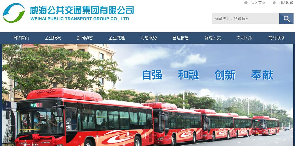 威海公共交通集團(tuán)有限公司成立于1974年10月,是由市政府授權(quán)以城市公交客運(yùn)為主,兼營旅游出租、駕駛培訓(xùn)、車輛檢測、廣告為一體的國有綜合性企業(yè),總資產(chǎn)6.34億元。公司下轄7個分公司,7個子公司,職工3700人。公司主要承擔(dān)著威海城區(qū)及近郊鄉(xiāng)鎮(zhèn)、文登城區(qū)及部分鄉(xiāng)鎮(zhèn)的公共交通客運(yùn)任務(wù)。其中威海城區(qū)營運(yùn)線路86條,線路總長度1873.4公里,營運(yùn)車輛1152輛(空調(diào)車452輛),年運(yùn)送乘客1.5億人次,公交出行分擔(dān)率達(dá)32.2%,中心城區(qū)公交線網(wǎng)覆蓋率達(dá)84%以上;文登區(qū)營運(yùn)線路23條,線路總長度760.9公里,營運(yùn)車輛190輛,年客運(yùn)量1800萬人次。中心城區(qū)電子站牌基本實(shí)現(xiàn)全覆蓋,老百姓從“追公交”到“掐指等公交”。城鄉(xiāng)客運(yùn)公交化改造顯著,公交化率達(dá)100%,市域范圍實(shí)現(xiàn)了“村村通公交”。近年來,公司堅(jiān)持以“服務(wù)民生,造福威?!睘槭姑瑩屪C(jī)遇,加快發(fā)展,通過優(yōu)化線網(wǎng)布局、加大車輛投入、改善服務(wù)設(shè)施、強(qiáng)化科技應(yīng)用等,積極打造綠色公交、民生公交、智能公交和一體化公交,努力為市民營造便捷、安全、舒適、環(huán)保的出行條件,初步構(gòu)筑了以普通車、空調(diào)車和中巴車等車型相配套,快線、干線、支線和社區(qū)線相結(jié)合,基本能滿足不同層次出行需求的客運(yùn)服務(wù)網(wǎng)絡(luò)體系。作為國有企業(yè),公司積極履行社會職責(zé),對65周歲及以上老年人、殘疾人、低保家庭學(xué)生等特殊群體實(shí)行免費(fèi)乘車,60-64周歲老年人實(shí)行半價(jià)乘車。近年來,企業(yè)先后榮獲“全國城市公共交通工作先進(jìn)企業(yè)”、省級 “消費(fèi)者滿意單位”和威海市“文明單位”、“勞動關(guān)系和諧企業(yè)”等榮譽(yù)稱號。公交社會服務(wù)滿意度一直保持在94%左右,位于全省前列。