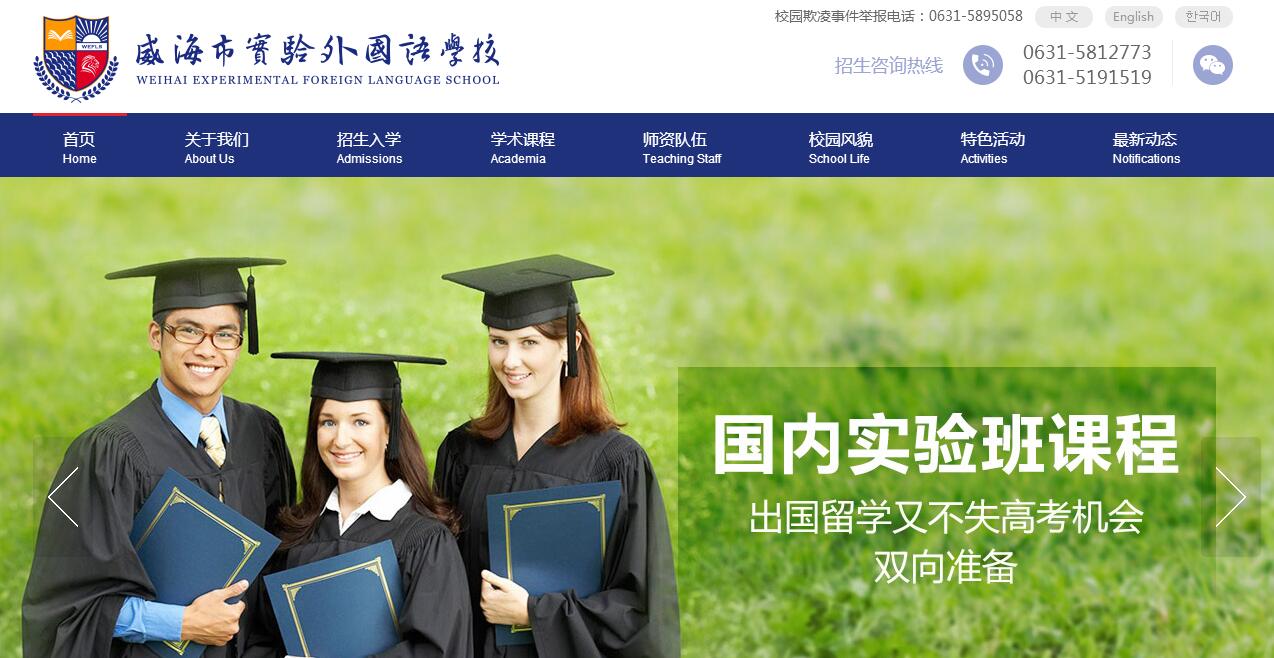 威海市實驗外國語學(xué)校是2016年由威海市政府主導(dǎo),經(jīng)威海教育局審批, 引進國內(nèi)知名教育集團管理的全日制民辦公助高中。其主辦方為威海市國有資本運營公司,公司注冊資本30億人民幣。威海市實驗外國語學(xué)校在威海市政府倡導(dǎo)的將威海市建設(shè)成為“宜居、宜業(yè)、宜游、宜學(xué)“的大戰(zhàn)略背景之下,為了提升威海市高中教育階段的國際化水平應(yīng)運而生,學(xué)校整合了原威海一中、二中、四中國際部的辦學(xué)經(jīng)驗,研發(fā)了一套新的中外融合的國際課程體系,以打造學(xué)生21世紀(jì)所需的核心素養(yǎng)(溝通能力、批判性思維、創(chuàng)新創(chuàng)造力、自主引導(dǎo)式學(xué)習(xí)能力,合作能力以及領(lǐng)導(dǎo)力等)為目標(biāo),培養(yǎng)具有中國情懷的世界公民。學(xué)校的國際課程體系融合了美國和加拿大基礎(chǔ)教育的一些先進教育內(nèi)容與理念,如生涯教育課程及STEAM(Science 科學(xué)、Technology 技術(shù)、Engineering 工程 Arts 藝術(shù) Math 數(shù)學(xué))課程體系,并配合相應(yīng)的教學(xué)方法(PBL——基于項目式學(xué)習(xí)、IBL——基于問題學(xué)習(xí)、CBL——基于社區(qū)學(xué)習(xí)以及Hands-on Learning——基于實踐的學(xué)習(xí)),力求讓學(xué)生在學(xué)習(xí)的過程中,能夠明白學(xué)習(xí)的目的,通過提升知識的應(yīng)用能力,讓知識變?yōu)樽陨淼闹腔?。學(xué)校面向全國招聘了一批優(yōu)秀的教學(xué)管理人員,并在威海市教育局的支持下,從威海一中、二中面試選拔了一批優(yōu)秀的學(xué)科老師。與此同時,學(xué)校并通過加拿大教育局以及美國學(xué)校合作伙伴引進了一批優(yōu)質(zhì)的外教,保證學(xué)校的國際融合課程的教學(xué)可以得到很好的執(zhí)行。威海市實驗外國語學(xué)校會始終堅持以培養(yǎng)推動和適應(yīng)未來社會發(fā)展的人為己任,形成自身的辦學(xué)特色,進一步推動威海教育國際化的進程。