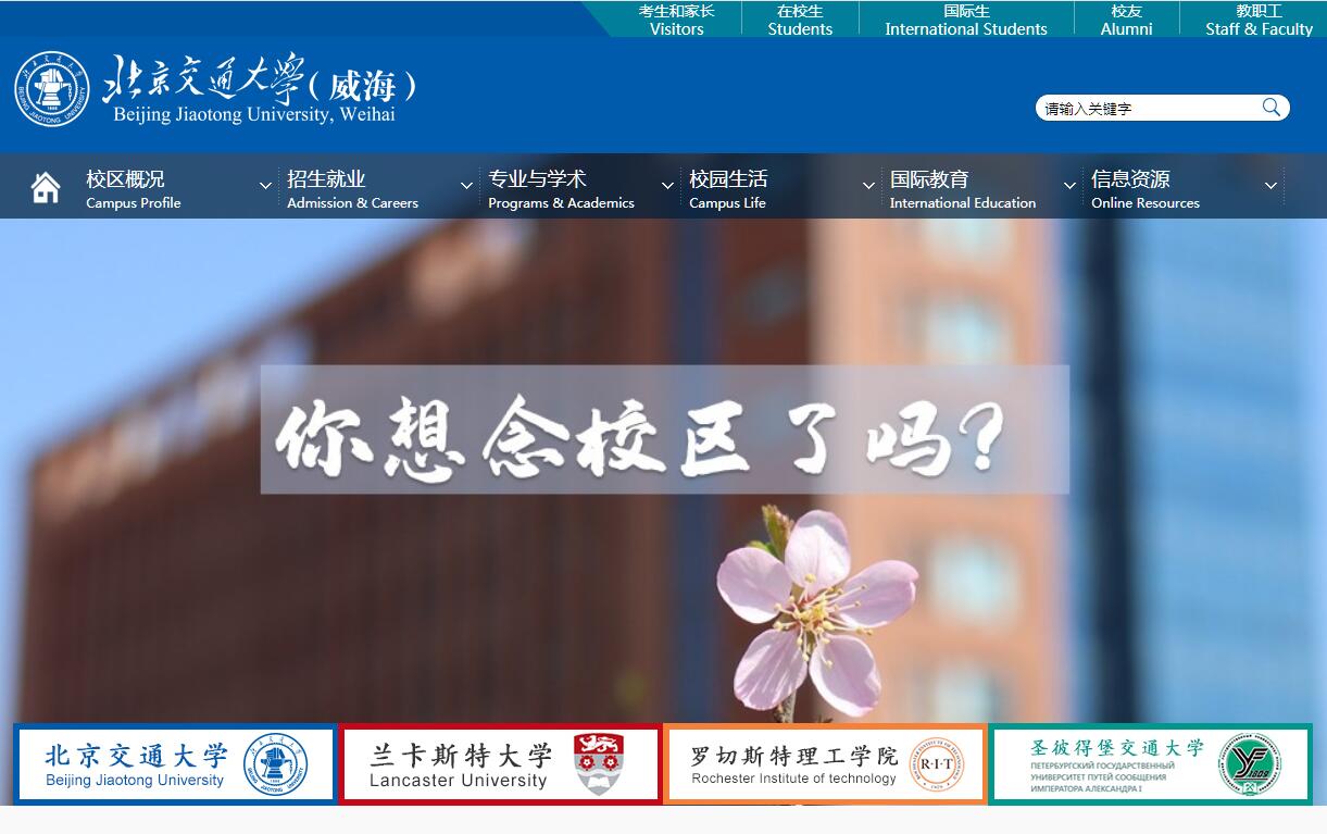 北京交通大學(xué)是教育部直屬,教育部、中國(guó)鐵路總公司、北京市人民政府共建的全國(guó)重點(diǎn)大學(xué),是國(guó)家“雙一流”建設(shè)高校,國(guó)家“211工程”、“985工程優(yōu)勢(shì)學(xué)科創(chuàng)新平臺(tái)”項(xiàng)目建設(shè)高校和具有研究生院的全國(guó)首批博士、碩士學(xué)位授予高校。2015年1月,“北京交通大學(xué)與美國(guó)羅徹斯特理工學(xué)院合作舉辦信息管理與信息系統(tǒng)專業(yè)本科教育項(xiàng)目”獲得教育部批準(zhǔn)。2015年4月19日,北京交通大學(xué)威海校區(qū)獲得教育部正式批復(fù),威海校區(qū)位于山東省威海南海新區(qū),由威海市政府整體規(guī)劃和建設(shè),校區(qū)占地74.1公頃,規(guī)劃建設(shè)面積22.6萬平方米。2015年9月7日,北京交通大學(xué)(威海)揭牌儀式暨2015級(jí)學(xué)生開學(xué)典禮在威海校區(qū)學(xué)術(shù)交流中心報(bào)告廳舉行。2015年12月18日,北京交通大學(xué)在威海舉辦的事業(yè)單位——北京交通大學(xué)(威海)獲批設(shè)立。2016年4月18日,北京交通大學(xué)與英國(guó)蘭卡斯特大學(xué)合作舉辦的中外合作辦學(xué)機(jī)構(gòu)“北京交通大學(xué)蘭卡斯特大學(xué)學(xué)院”獲得教育部正式批復(fù),9月11日舉行揭牌儀式。學(xué)院設(shè)有通信工程、計(jì)算機(jī)科學(xué)與技術(shù)、環(huán)境工程、數(shù)字媒體藝術(shù)4個(gè)本科專業(yè)和電子與通信工程、物流工程2個(gè)研究生專業(yè)。2016年,在威海市政府的支持下,國(guó)家級(jí)物理實(shí)驗(yàn)教學(xué)示范中心(全國(guó)科普教育基地)在威海校區(qū)建設(shè)分中心,9月獲頒威海市“科普教育基地”并啟用。中心向社會(huì)開放,進(jìn)一步服務(wù)于威海市、煙青威地區(qū)以及整個(gè)山東省的科普與教育事業(yè)。2017年3月13日,北京交通大學(xué)蘭卡斯特大學(xué)學(xué)院新增工商管理專業(yè)、會(huì)計(jì)學(xué)專業(yè)通過教育部本科專業(yè)審批。
